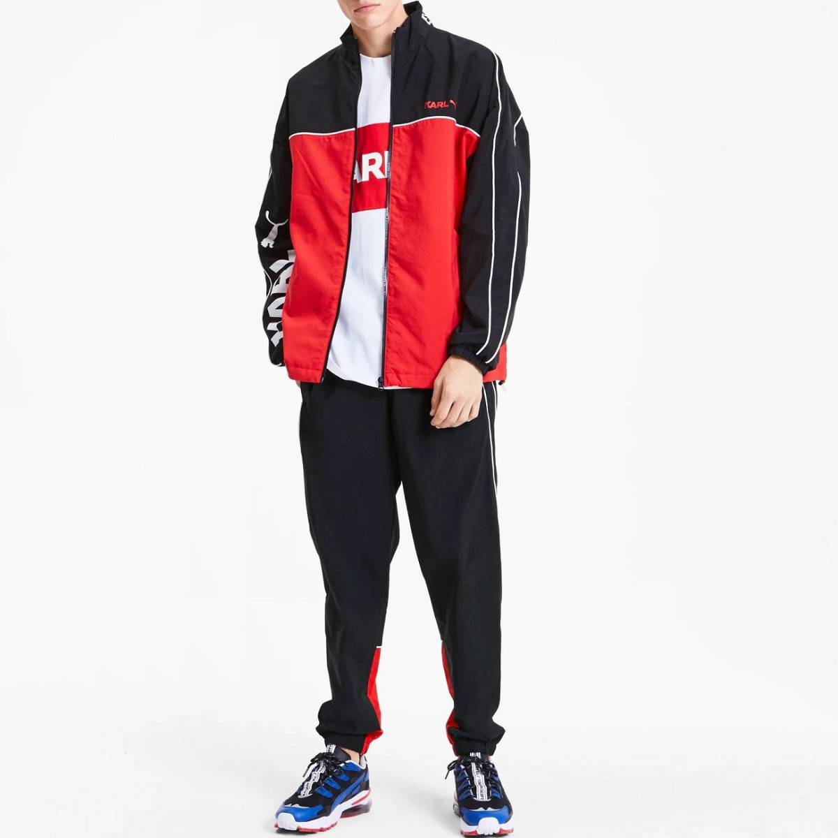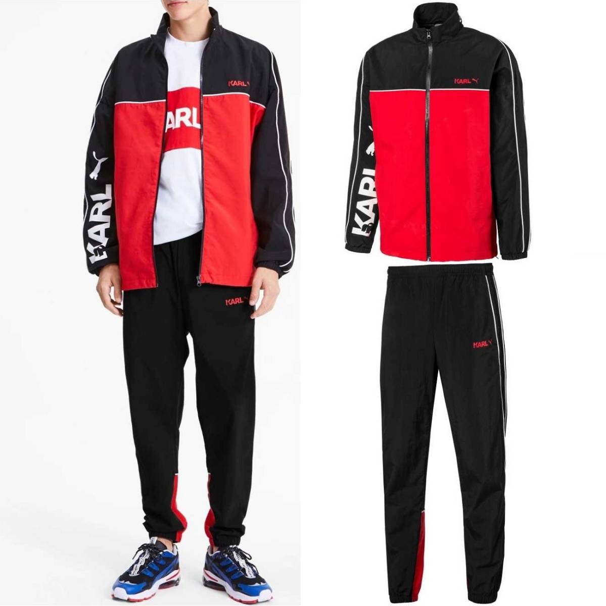プーマ カールラガーフェルド コラボ トラックジャケット&パンツ USサイズS(M相当) 定価36300円 黒/赤 KARL LAGERFELD メンズ 上下セット