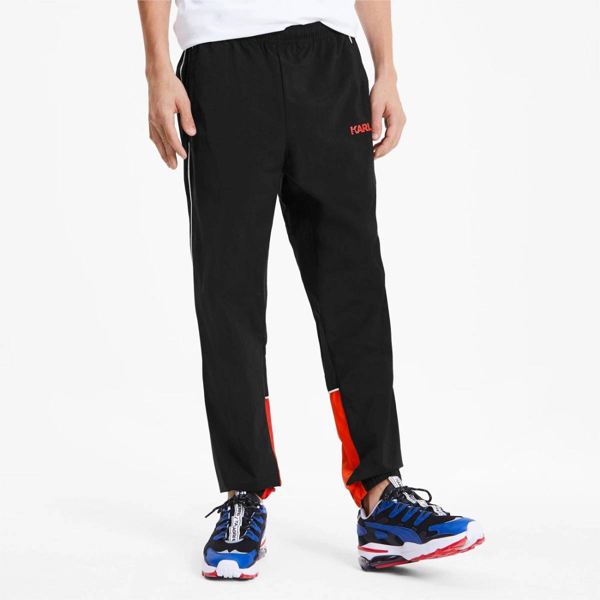 アスレチックなカットと少しの贅沢さを融合した、PUMA x KARL LAGERFELDのトラックパンツ。