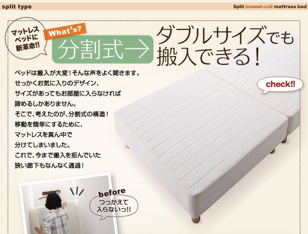 新・移動ラクラク 分割式マットレスベッド 専用敷きパッドセット ボンネルコイルマットレスタイプ セミダブル 脚15cm 組立設置付