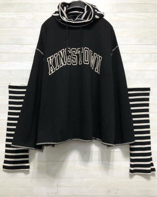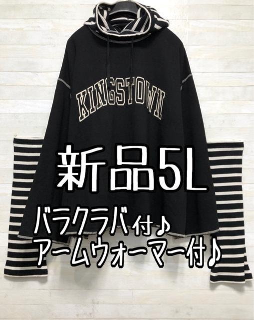 新品☆5L黒系コットン100%プルオーバー♪バラクラバ・アームウォーマー付☆p168