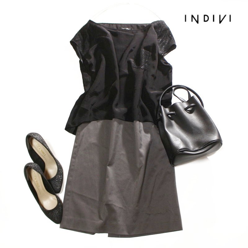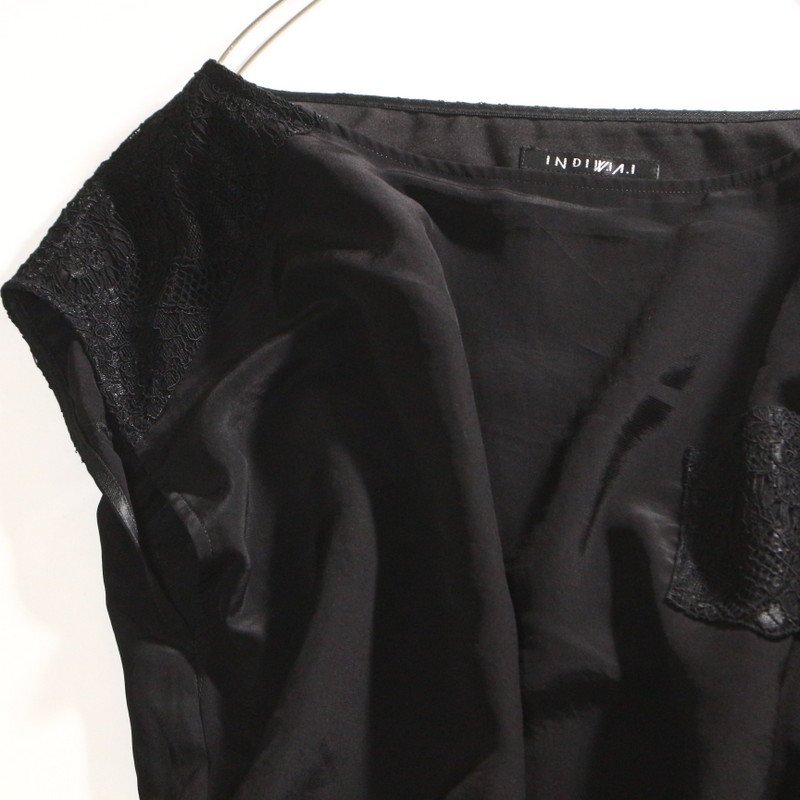 美品 インディヴィ INDIVI ワンピース エレガント 春 夏 フォーマル レース ドッキングワンピース ワンピース 9号 38 グレージュ ブラック