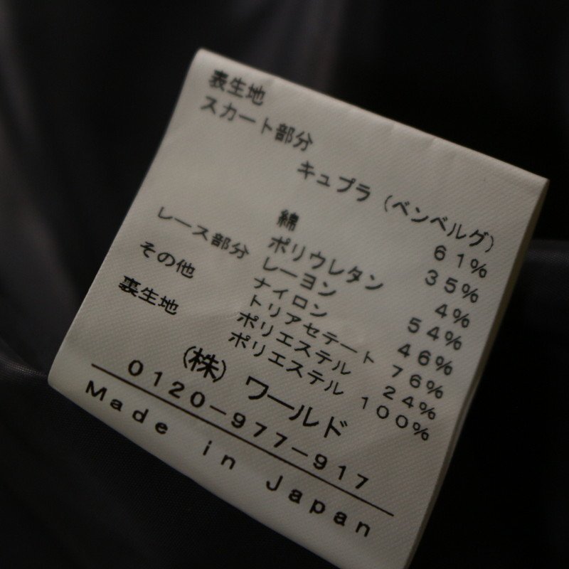 レースの飾り入りトップスとスカートのドッキング、スカートはハリのあるしっかり生地、ファスナーは左脇下、フォーマルにも良い綺麗めデザインです。