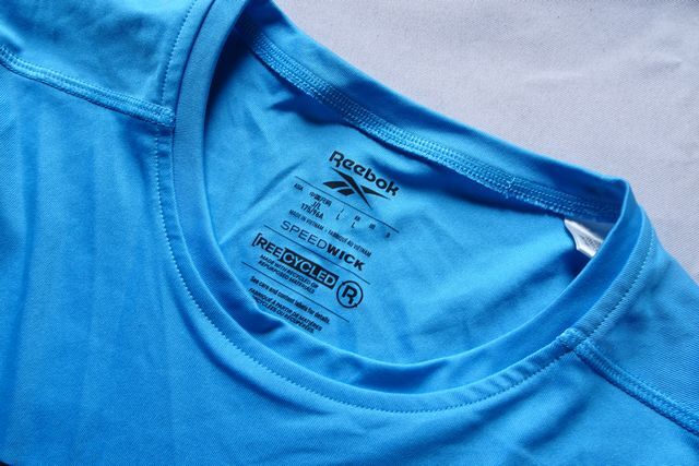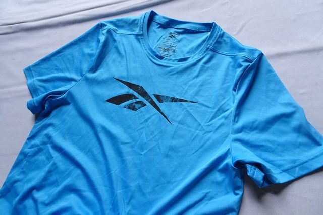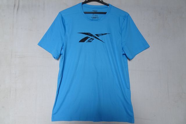 Reebok/リーボック/半袖Tシャツ/SPEED WIC/速乾性素材/再生ポリエステル/ロゴプリント/フィット感/スポーツ/水色/Lサイズ(8/26R)