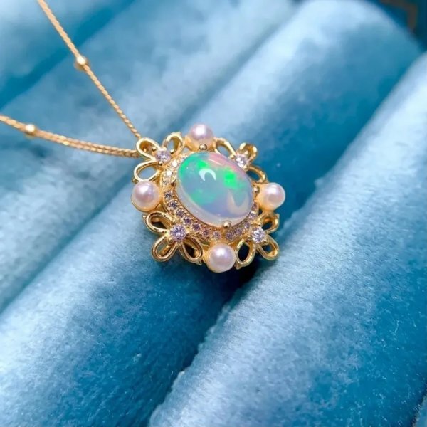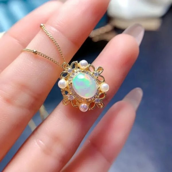 ナチュラルオパールペンダント付きネックレス、925シルバー、証明書