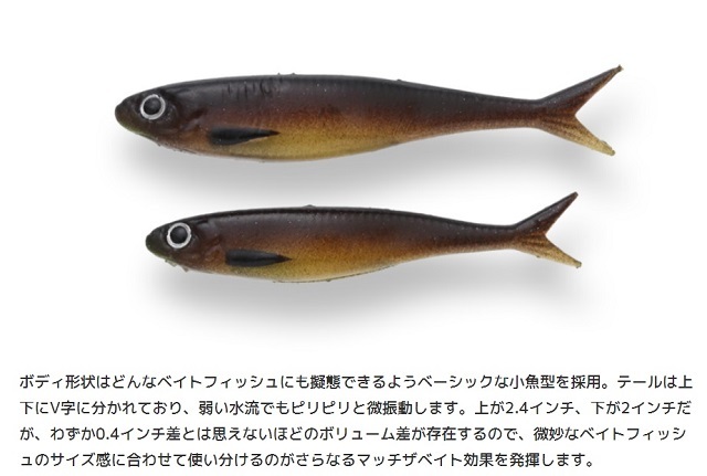 | 新品になります。  商品画像欄には、参考画像として、色違いの画像を使用しております。こちらは1枚目のパッケージの商品となります。 パッケージの仕様は変更になる場合がございます。 浮力調節可能なフィッシュフライエラストマーは様々な使用方法に対応。今江はサスペンド~デッドスローフローティングに調節したキャロライナリグで使用していたが、ほかにもダウンショットリグ、ジグヘッドリグ、スプリットショットリグなど、フィッシュフライエラストマーのネイルシンカーによる姿勢制御機能を生かした使い方は創造性豊か。ベイトフィッシュシルエットとエラストマーの浮力、そして超高耐久性の組み合わせは、新たなライトゲームの世界を切り開きます。 4本入  |      ||