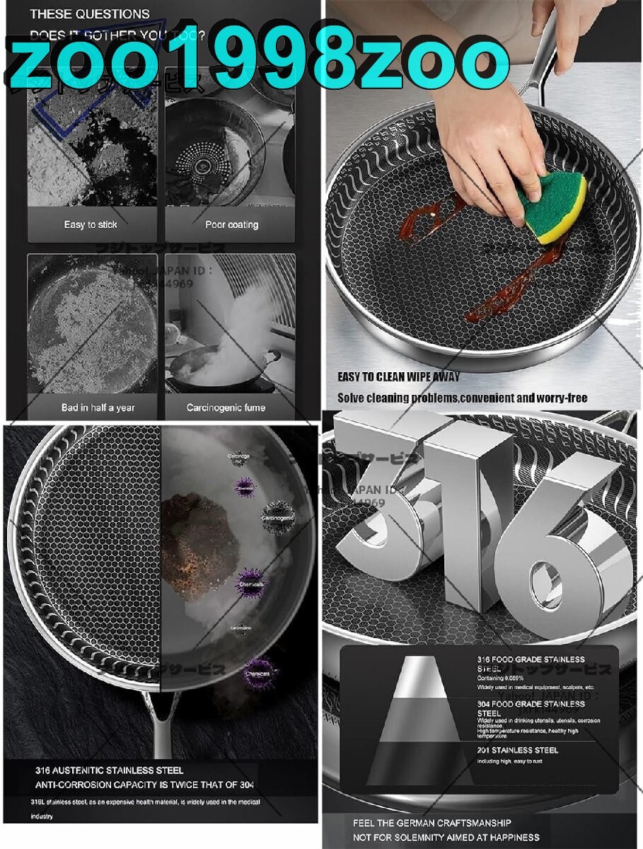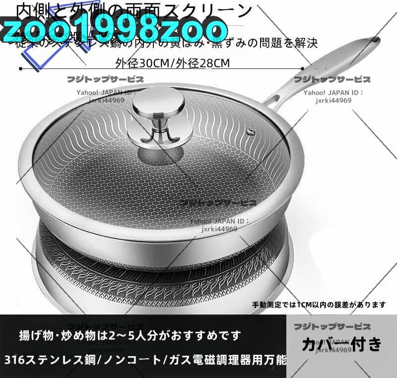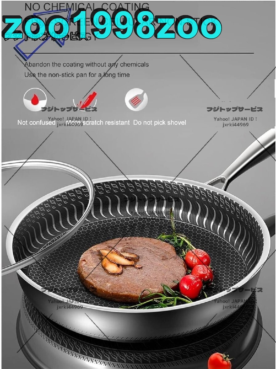 【商品詳細】 フライパン 深型 高耐久の 深型フライパン 野菜炒め 中華料理 炒め鍋 ハンドル付き316ステンレス鋼中華鍋鍋 ノンスティックフライパン ハニカム器具セーフパン 28cm