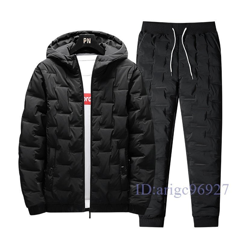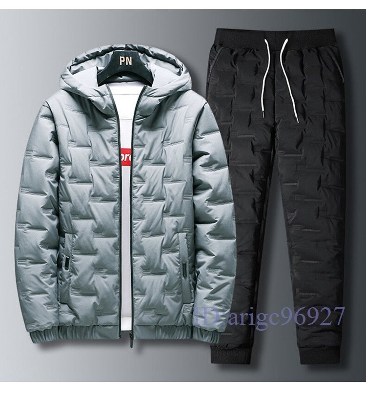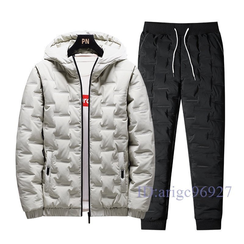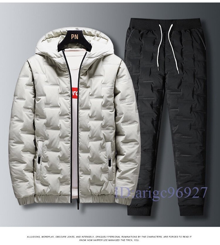 Y546☆新品メンズ セットアップ中綿ジャケット 厚手パンツ 無地 スポーツウェア スウェット上下セット 防寒 上下セット M~5XL カーキ