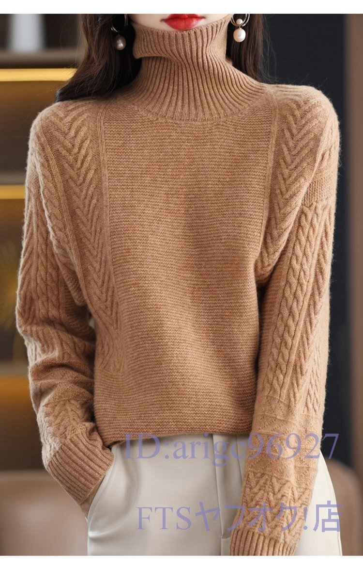 A0563☆新品Fサイズ 上質203040代 ニットセーター オシャレ ミンクカシミヤ混 暖かい 長袖 レディース ニットトップス *カーキ