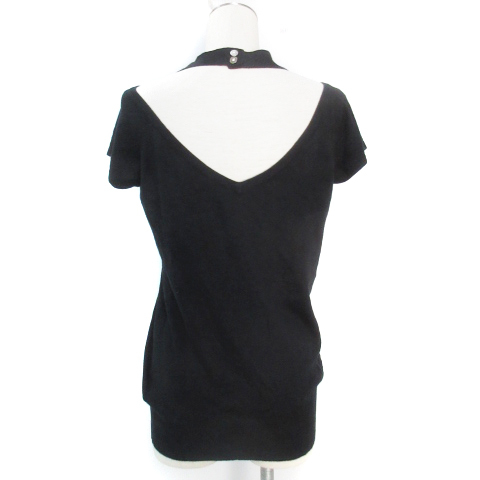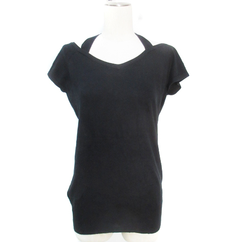 ビッキー VICKY ニット カットソー 半袖 Vネック 無地 2 M 黒 ブラック /FF15 レディース