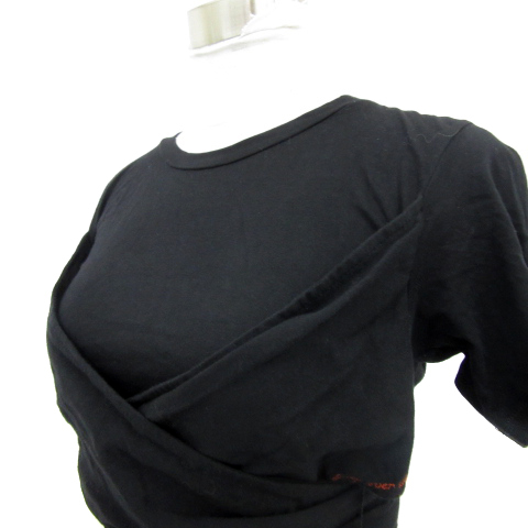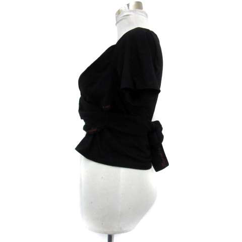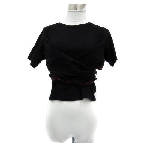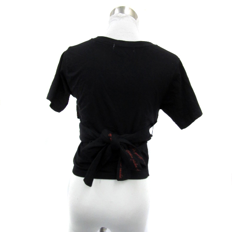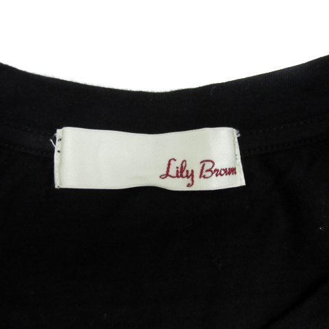 リリーブラウン Lily Brown Tシャツ カットソー 半袖 ラウンドネック ショート丈 無地 リボン F 黒 ブラック 赤 レッド レディース