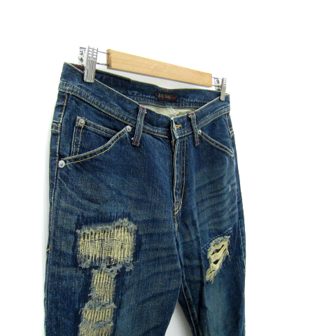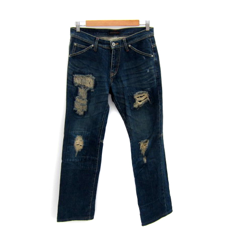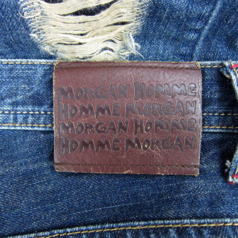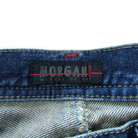モルガンオム MORGAN HOMME デニムパンツ ジーンズ ストレートパンツ ロング丈 ダメージ加工 L 紺 ネイビー /SY17 メンズ