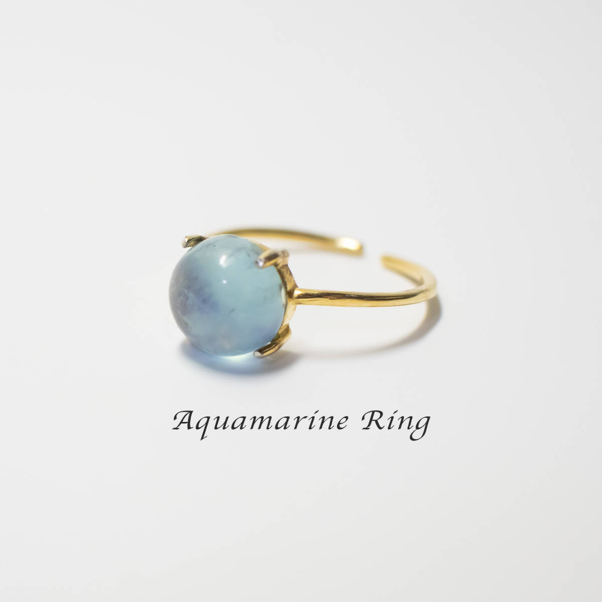 天然石 リング◆アクアマリン◆フリーサイズ◆ゴールド◆18KGP◆s925◆指輪