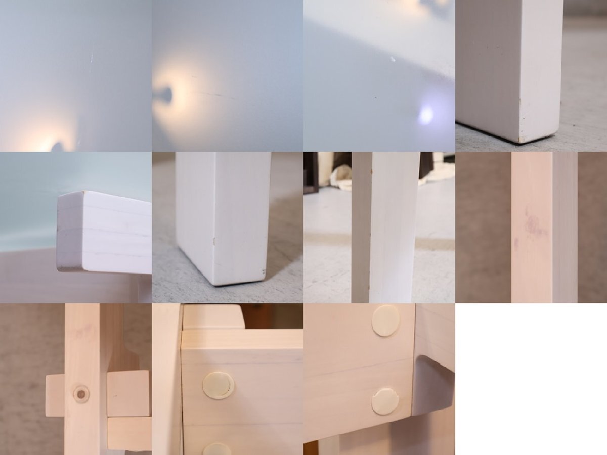 USEDですのでキズ、汚れ等がありますが使用上の問題はありません。天板に小キズあり、また脚部に少しきしみがあります。