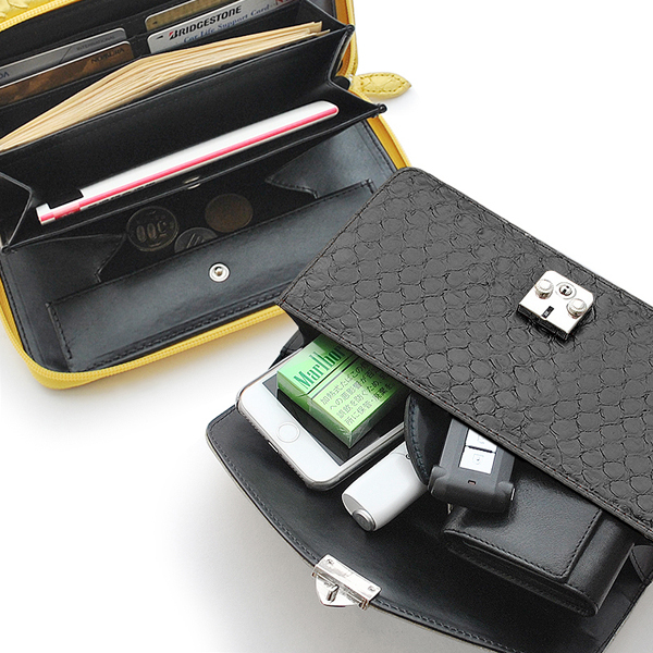 本物パイソン(錦蛇)を贅沢に使用!背面財布機能付き!ミニセカンドバッグ