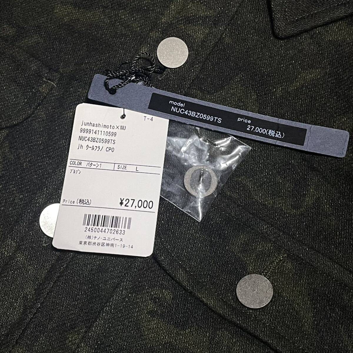 新品 定価27000円 junhashimoto × nu CPO ウールフラノ  ジュンハシモト ナノユニバース シャツジャケット 迷彩 カモフラ 柳10265 ブルゾン 裏地付き サイドポケット付き nano universe wjk ダブルジェイケイ