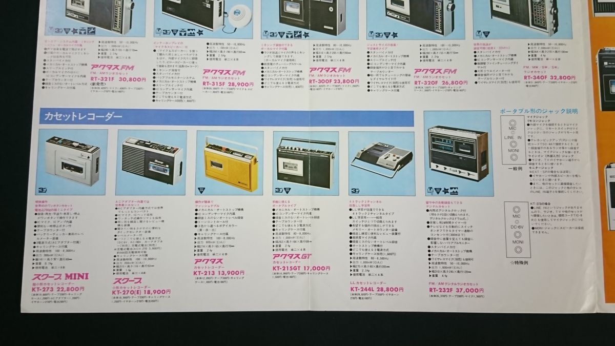 | 商品説明 | 中古品としての出品です。 【昭和レトロ】 『TOSHIBA(東芝) Tape Recorder(テープ レコーダー)総合カタログ 昭和48年9月』 RADIO CASSETTE ACTAS シリーズ RT-325F/RT-330F/ RT-321F/RT-315F/RT-300F/RT-320F/RT-340F/ CASSETTE RECORDER スコープシリーズ KT-273/KT-270E/ ACTAS シリーズ KT-213/KT-215GT/ CASSETTE DECK PT-490/PT-470/PT-415/KT-405/PT-400 STEREO TAPE DECK(オプンリールデッキ) PT-884/PT-862D/PT-852/ CARTRIDGE DECK PT-100/PT-106/PT-124/KT-805/PT-125/ET-813/ ●カタログのみの出品になります。 ●使用感や擦れ、折れ、ヨレ、シミなどございます。 ●書き込みは、ございません。 ●商品は、付属品も含めて、画像に写っている物がすべてです。 |