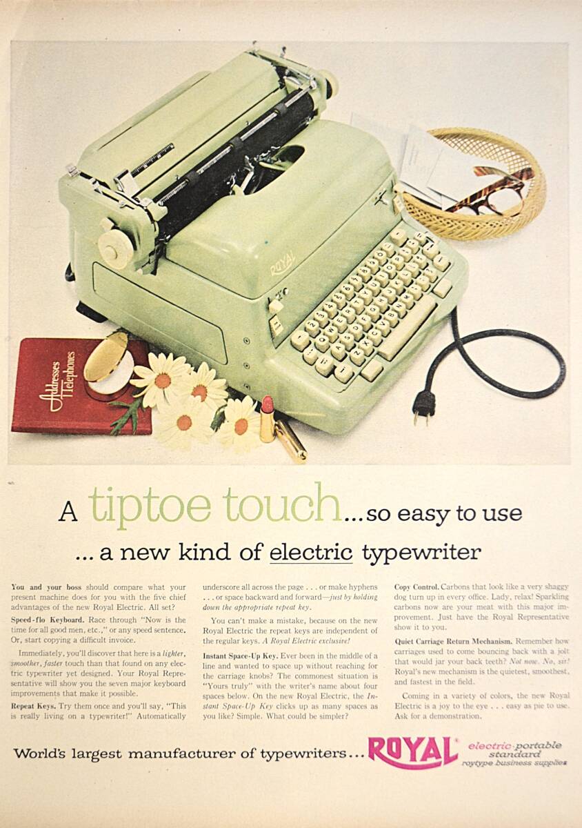 稀少!広告/1950年代ロイヤル・タイプライター広告/Royal Electric Portable Typewriter/T