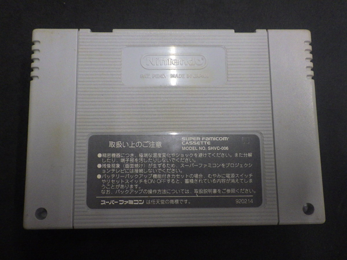 | 商品説明・コメント | 当時物のゲームです。 今は亡きスーパーファミコンの希少なソフトになりますので現存も少なくなり中々市場に現れる事が無くなって来ましたのでマニア必見です。 商品の仕様の詳しくは御自身でお調べ頂きます様にお願い致します。 古いゲームになりますので全てに於いてオリジナルを保証する物では御座いませんし欠品の有無すら把握が出来かねます。 状態に尽きましては写真にて御確認頂けます様御願い致します。 この年代のソフト・メディアにありがちな機器接点の清掃の必要性も考えられますし写真では御確認頂けない不具合等もある前提で原則ジャンク扱いにて御考慮下さい。バッテリーバックアップ式セーブ機能を搭載したソフトのセーブ機能に尽きましても原則、保証外になります。 上記の通り、原則瑕疵担保責任はお受け致しませんので御了承下さいます様御願い致します。 上記の条件を御理解頂けない方の入札はお断り致します。 |