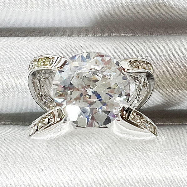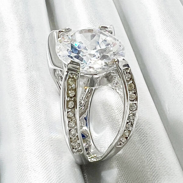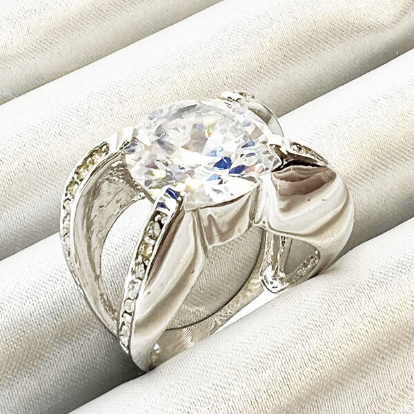 送料無料!! 大粒 CZダイヤ(キュービックジルコニア) 12号 ストーン デザインリング 指輪 華やか パーティー ゴージャス ◇R-0201