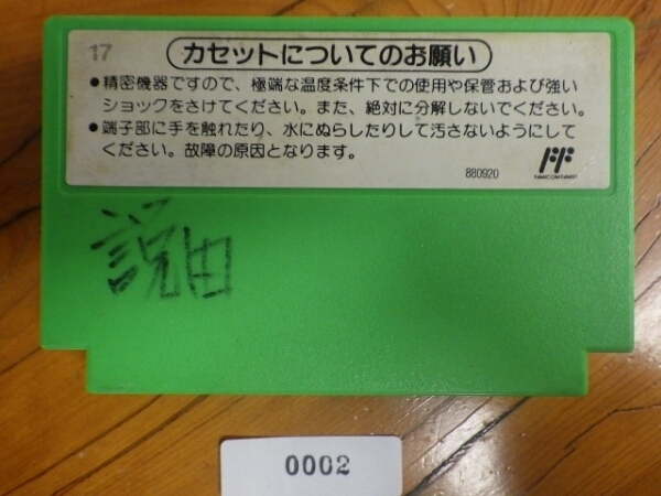 商品説明・コメント | 当時物のゲームです。 今は亡きファミコンの希少なソフトになりますので現存も少なくなり中々市場に現れる事が無くなって来ましたのでマニア必見です。 商品の仕様の詳しくは御自身でお調べ頂きます様にお願い致します。 古いゲームになりますので全てに於いてオリジナルを保証する物では御座いませんし欠品の有無すら把握が出来かねます。 状態に尽きましては写真にて御確認頂けます様御願い致します。 この年代のソフト・メディアにありがちな機器接点の清掃の必要性も考えられますし写真では御確認頂けない不具合等もある前提で原則ジャンク扱いにて御考慮下さい。 上記の通り、原則瑕疵担保責任はお受け致しませんので御了承下さいます様御願い致します。 上記の条件を御理解頂けない方の入札はお断り致します。 |