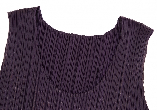 | プリーツプリーズPLEATS PLEASE フォイルプリントプリーツノースリーブ 紫3 |