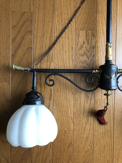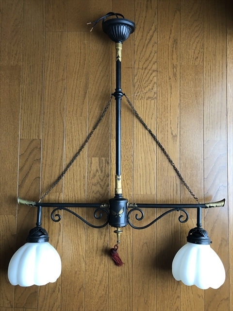 即決【大正浪漫びいどろ屋】プレスガラス電笠付き 二灯式和灯照明
