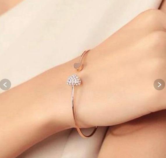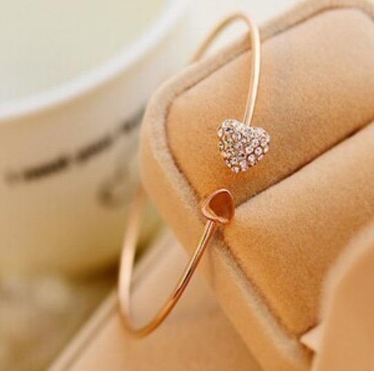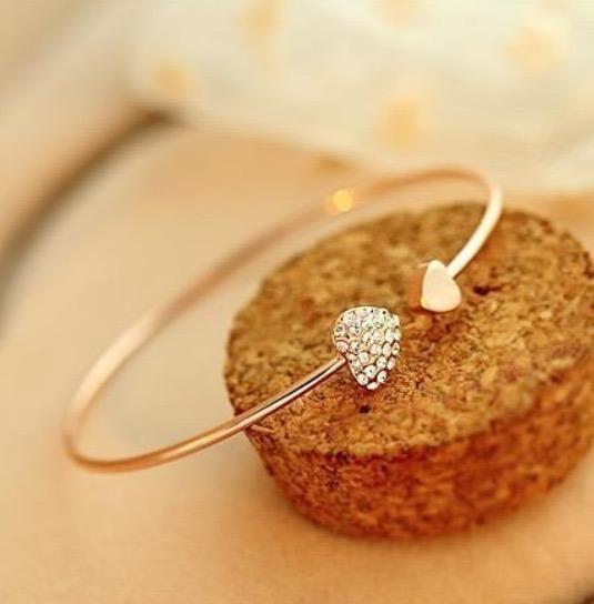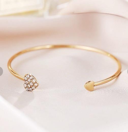 ゴールドのハートとラインストーンが可愛いブレスレットです