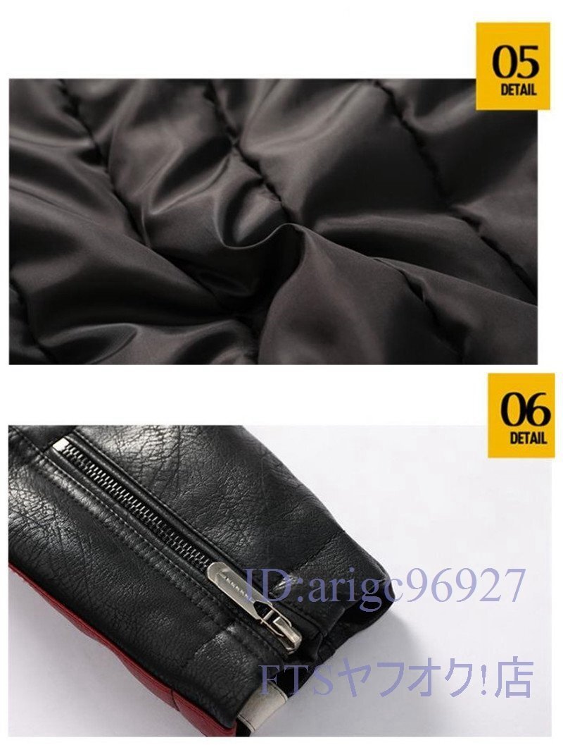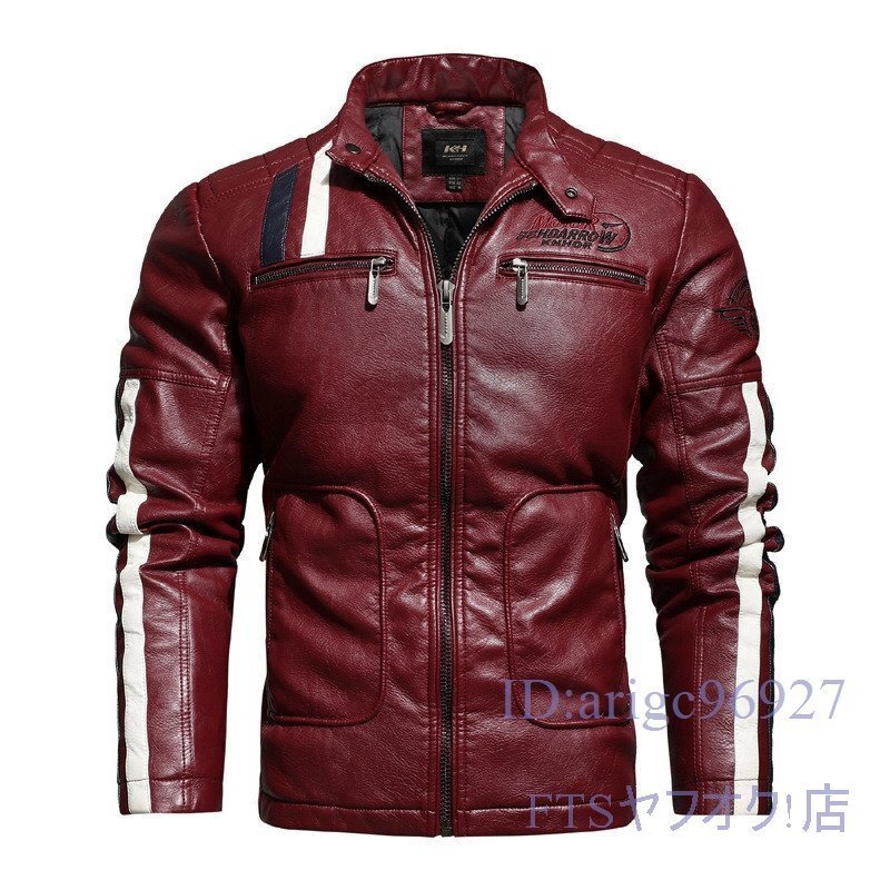 T878☆新品ライダースジャケット ☆メンズ 中綿ジャケット トレンド ブルゾン コート カジュアル バイクウエア【KH-168】レッド L