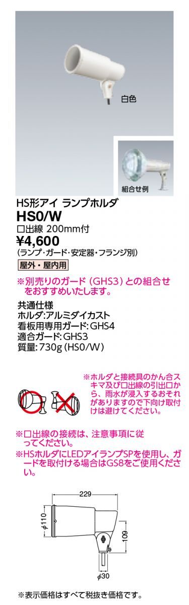 LED防水シーリングライト HS形アイ ランプホルダ ホワイト HS0/W