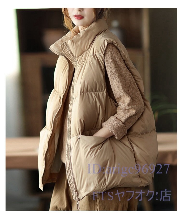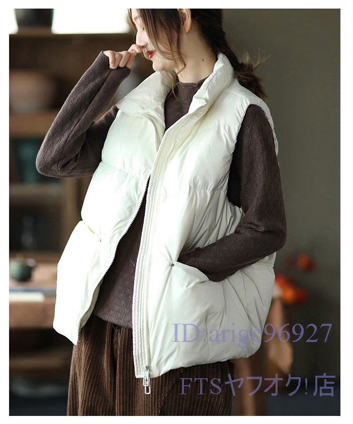 V749☆新品フリーサイズ?ベストダウンベストジャケットコート中綿ベストレディースおしゃれアウター秋冬服暖かい防寒大きいサイズ*白