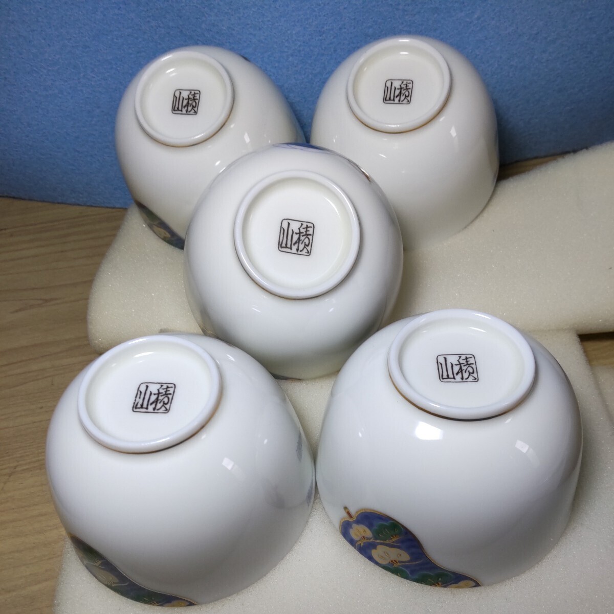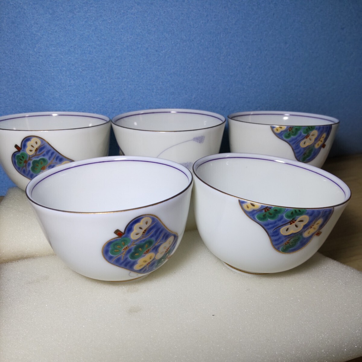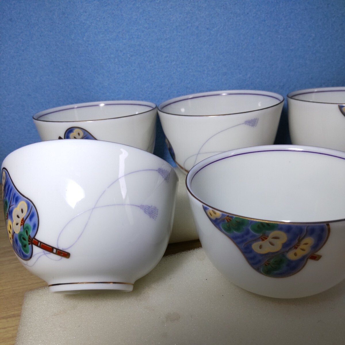 【雑貨】 食器 山積窯 軍配柄 湯呑み 5客セット 金縁 金彩色絵 陶磁器 深川製磁 和食器