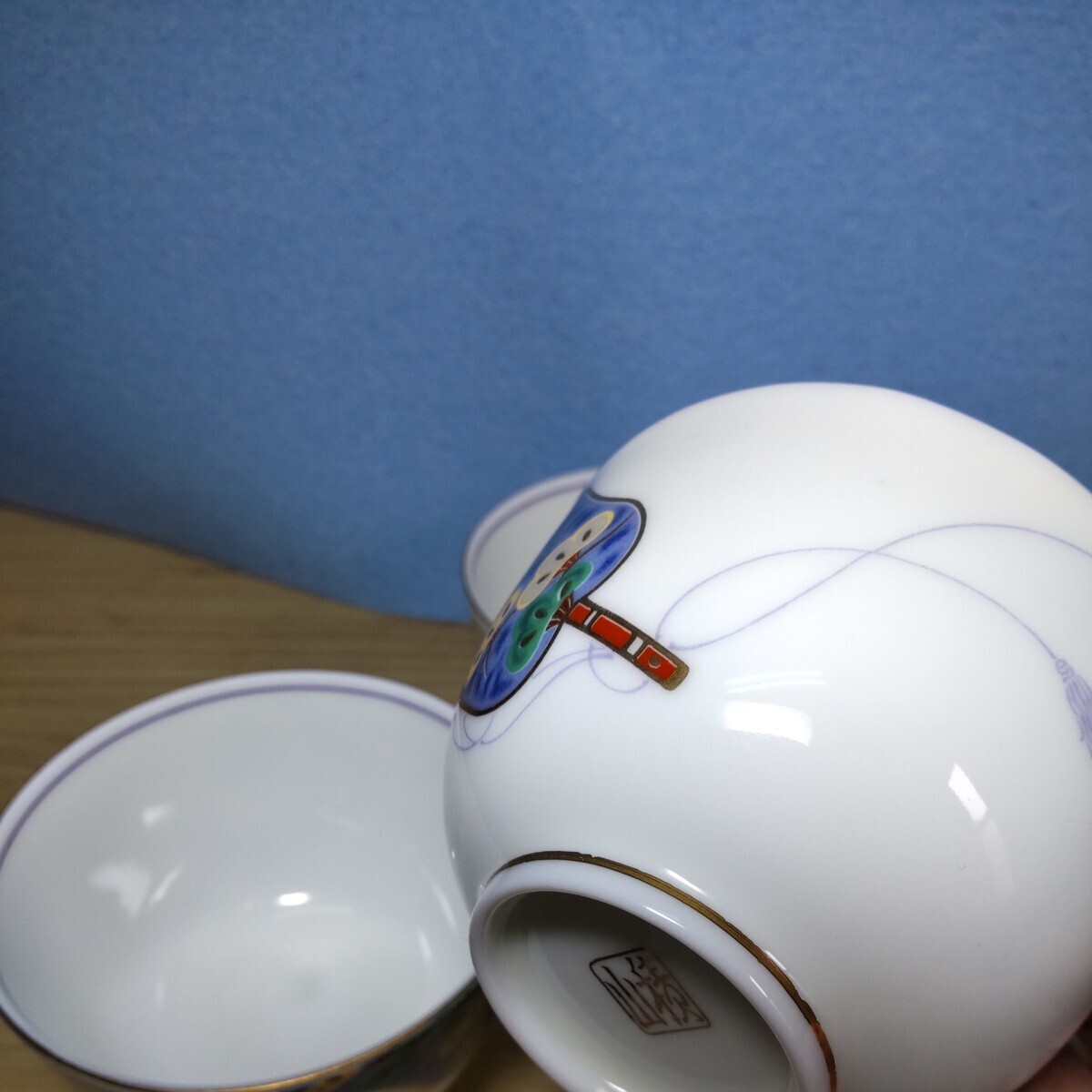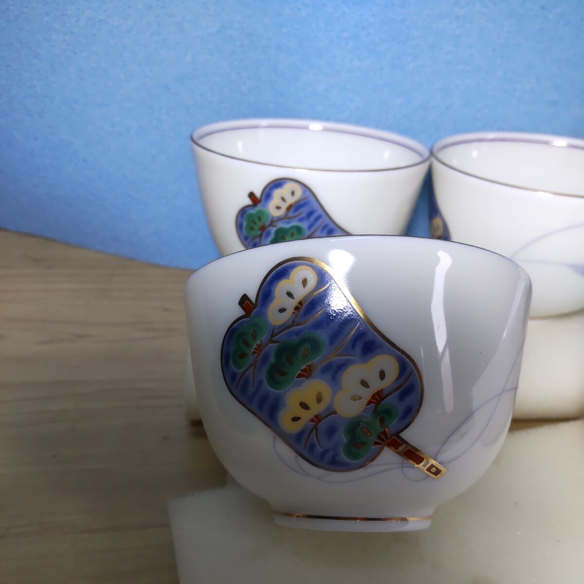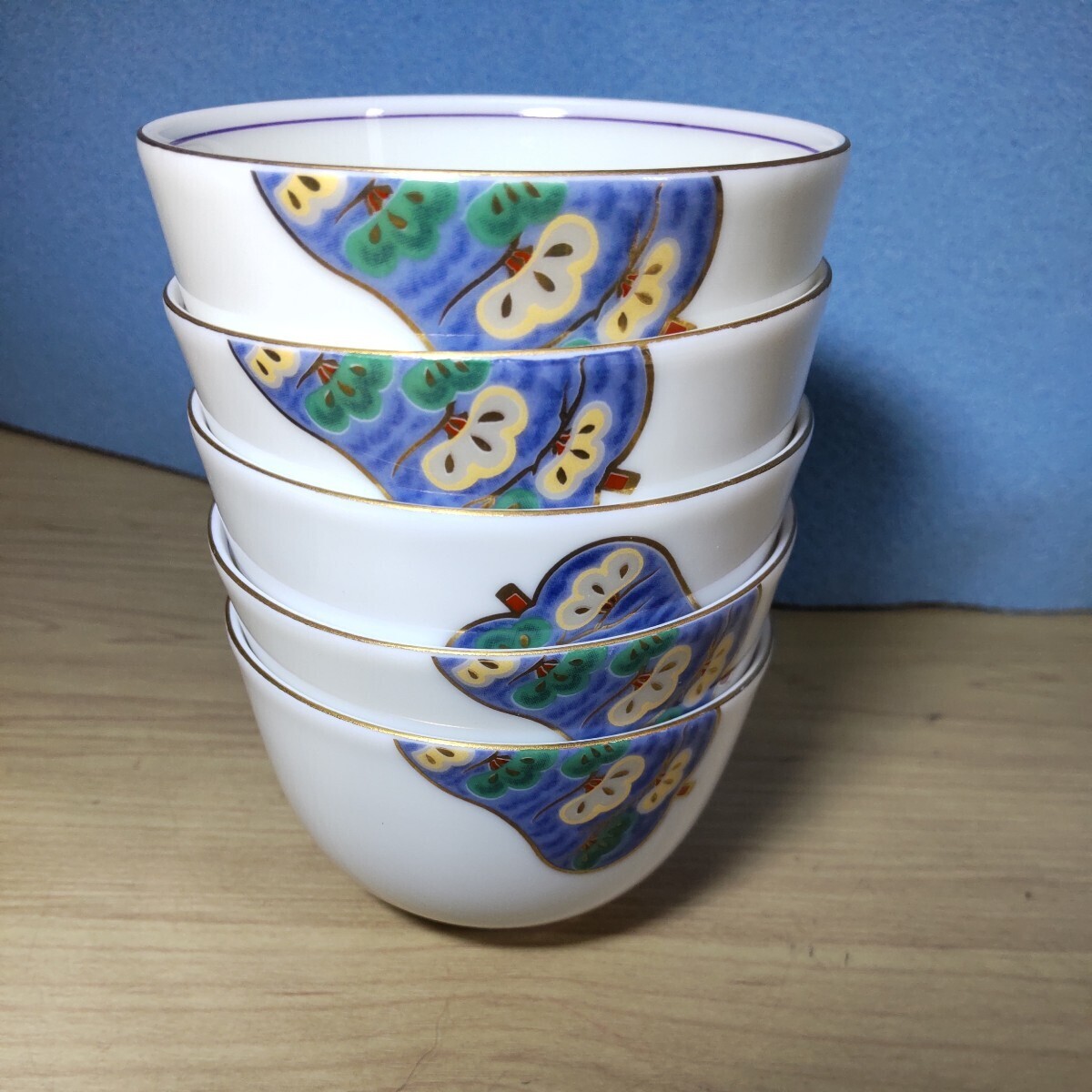 【雑貨】 食器 山積窯 軍配柄 湯呑み 5客セット 金縁 金彩色絵 陶磁器 深川製磁 和食器