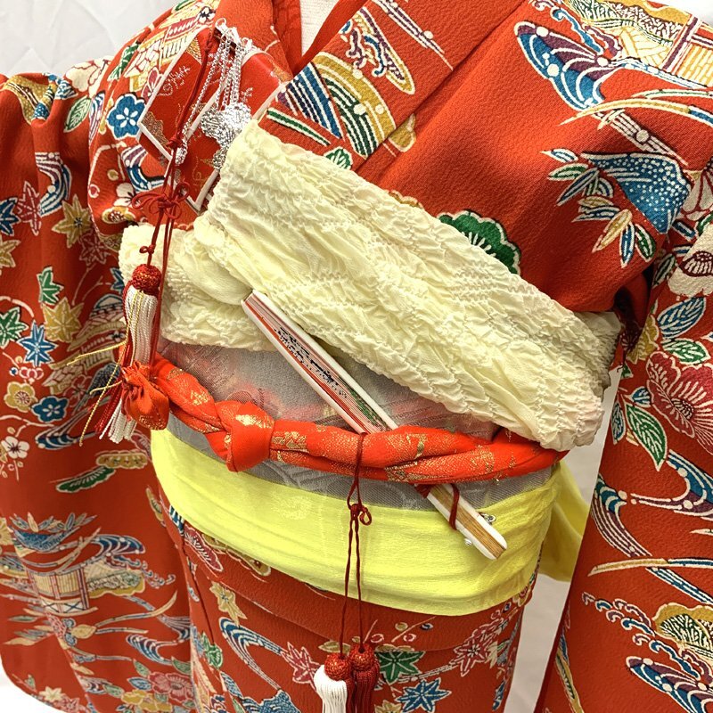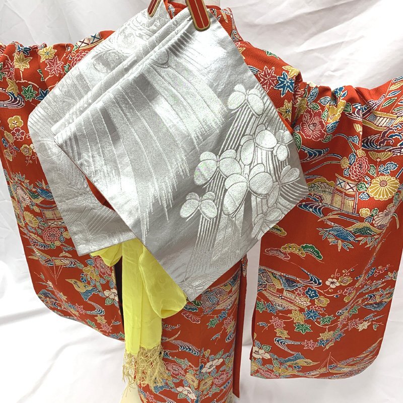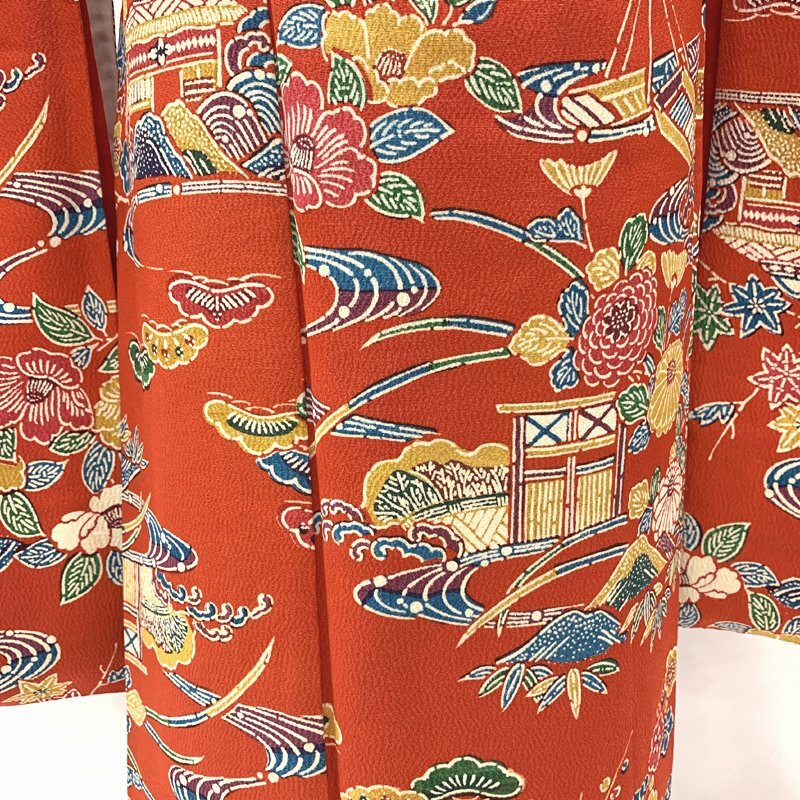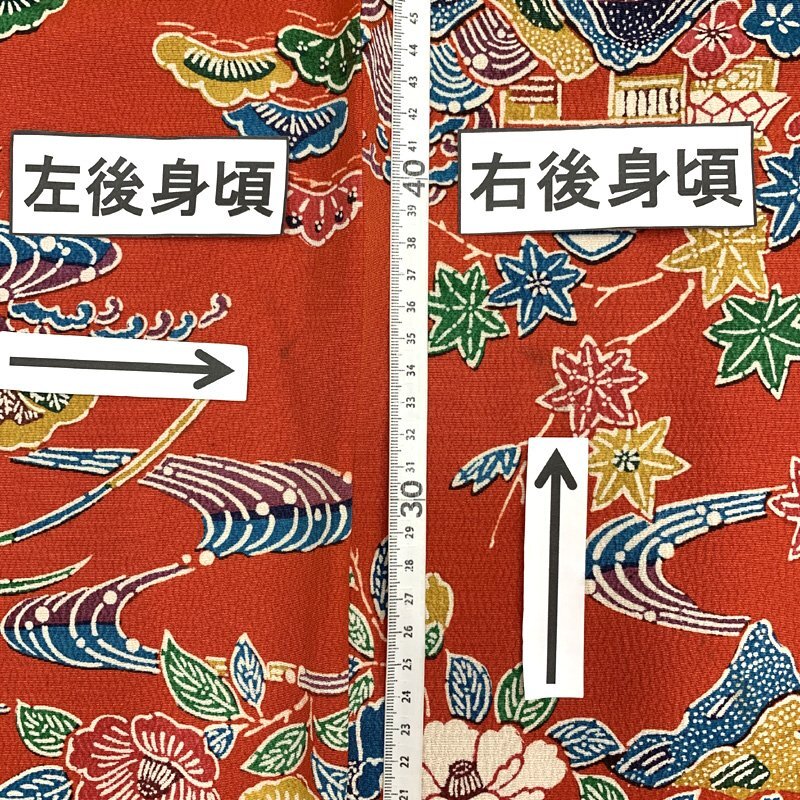 □七五三 七歳 女児 着物&袋帯&長襦袢 縮緬 紅型調□状態良好 (No.gd) やや黄味がかった赤地に、紅型調の縮緬地が可愛らしい7歳七五三のお着物と袋帯のセットです(その他の小物はセットに含まれません)。 袴と合わせてハーフ成人式や小学校の卒業式にもご利用いただけます。 お小物類をご希望の方はおまかせとなりますが、別途6000円頂戴します。 (着物)内揚げが、17㎝ございます。肩上げをしておりませんので、お子様の裄丈に合わせてお直しをお願いします。左右後身頃裾から、約34cm辺りに薄黒っぽいシミがございますが遠目から見るとあまり分かりません。 (長襦袢)袖丈の合うものをおまけでおつけいたしますが、中古品のためシミ汚れがある場合がございます(素材はお選びいただけません)。なお半衿は付属いたしません。 (帯)特に目立つシミやダメージはございません。 【素材】(着物)正絹、(帯)正絹 【色】やや黄味がかった赤 *モニターによって色味は実際と異なる場合がございます。 【サイズ】(着物) 裄:56cm、肩上げ:0cm、袖幅:30cm、袖丈:72.5cm、丈(肩から):127cm、腰上げ:0cm、前幅:21cm、後幅:26cm (帯) 幅:26cm、長さ:396cm *素人採寸のため、多少の誤差はご容赦ください。 お求め安い価格での出品ですので、いかがでしょうか? |