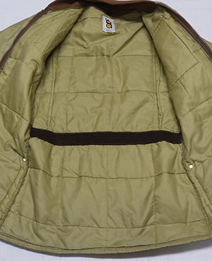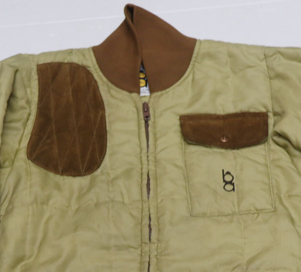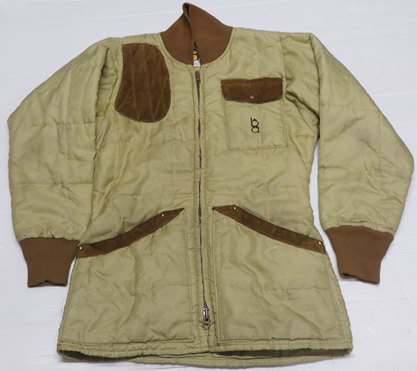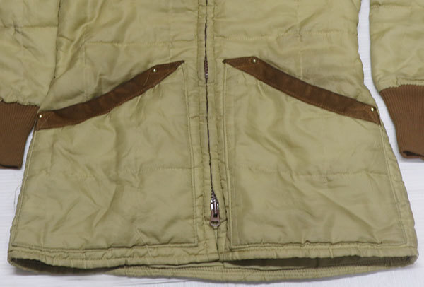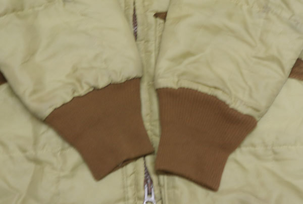 アメリカ買い付けの70’S80’S頃のアメリカ製(表記はございませんが)Bob Allenのナイロンジャケットのクリーム系x茶系(スエードレザー)です。