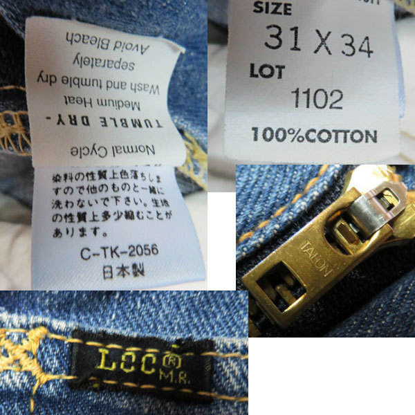 DP76リーLEEアメリカ古着70’Sビンテージ復刻デニムパンツW32ストレートTALONインディゴデニム日本製ポケット当て布付レザーパッチ オール