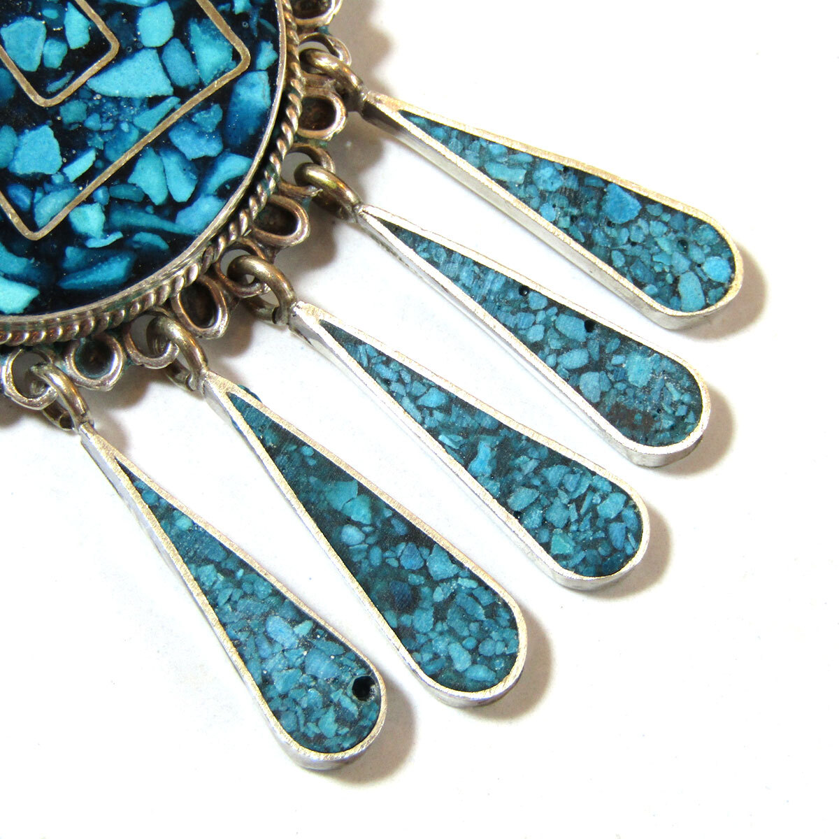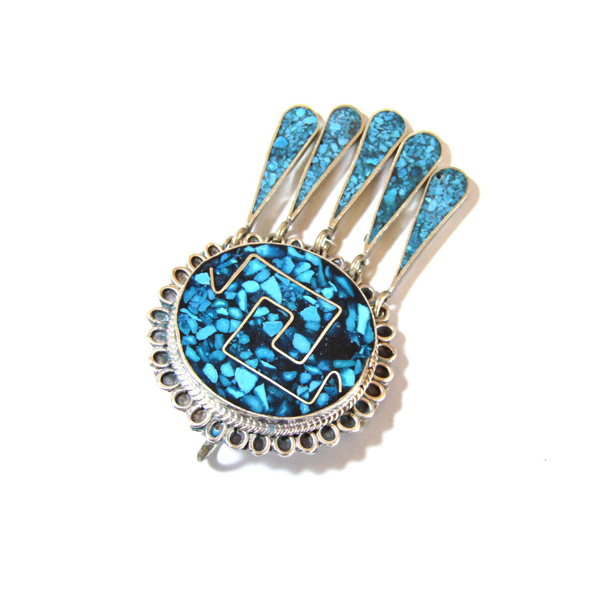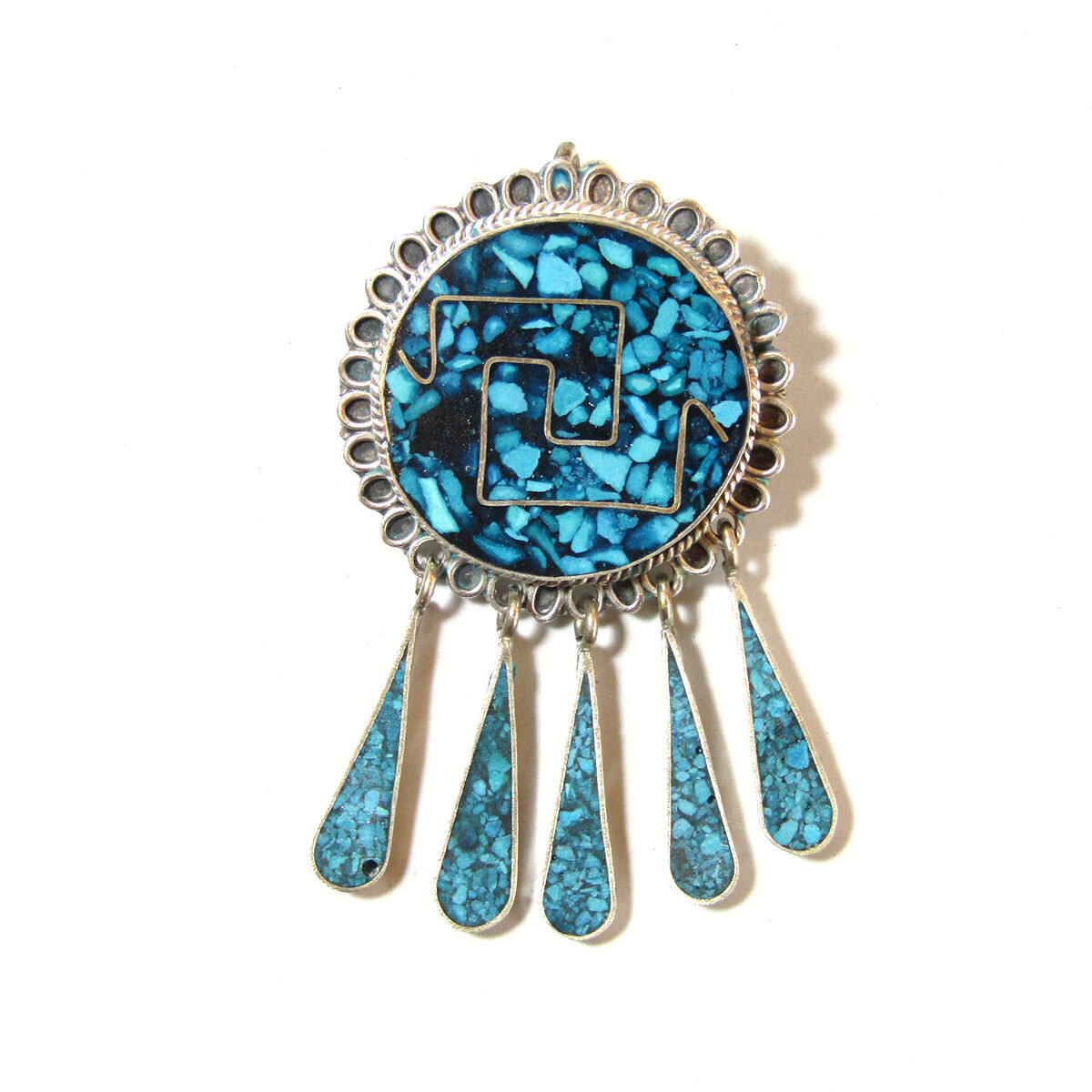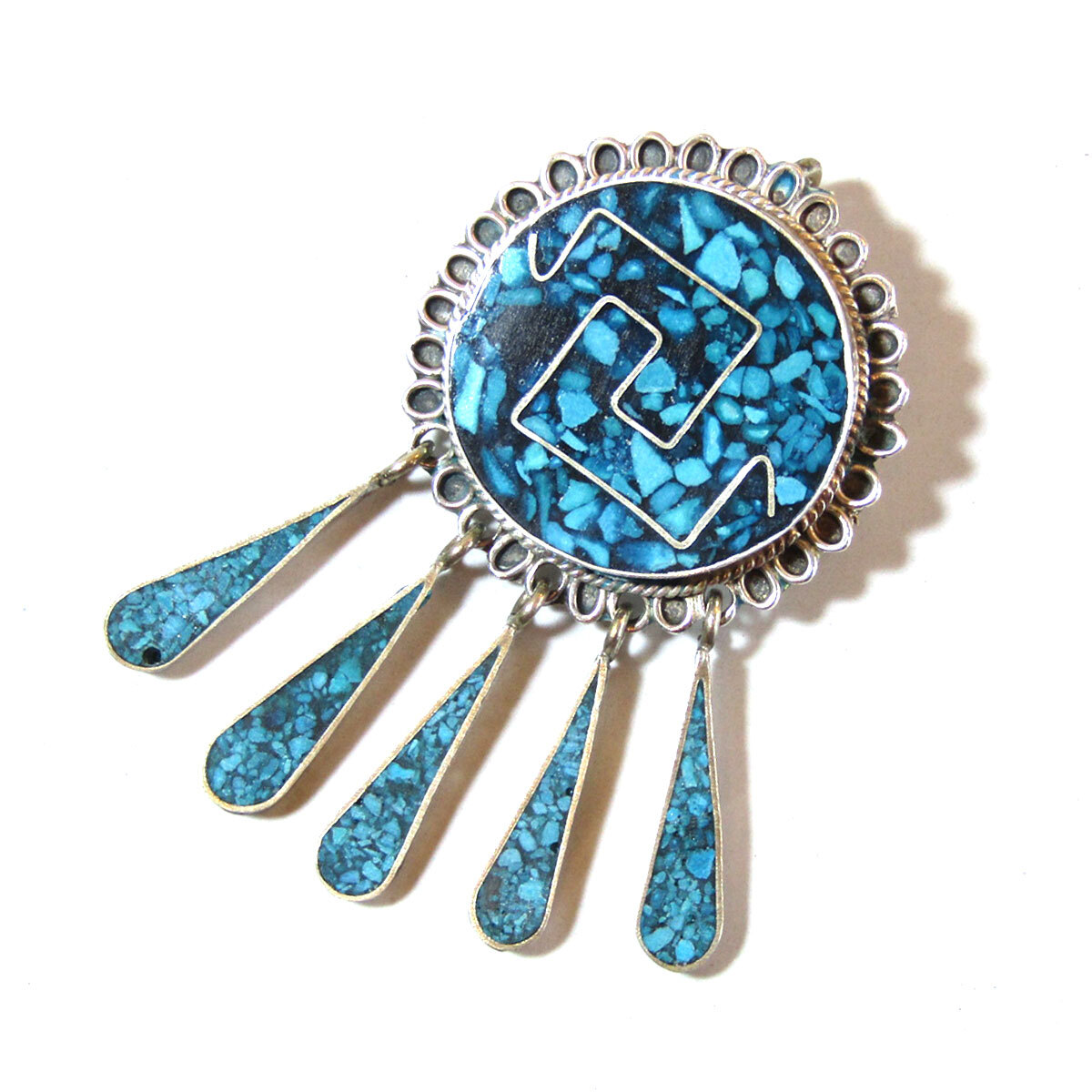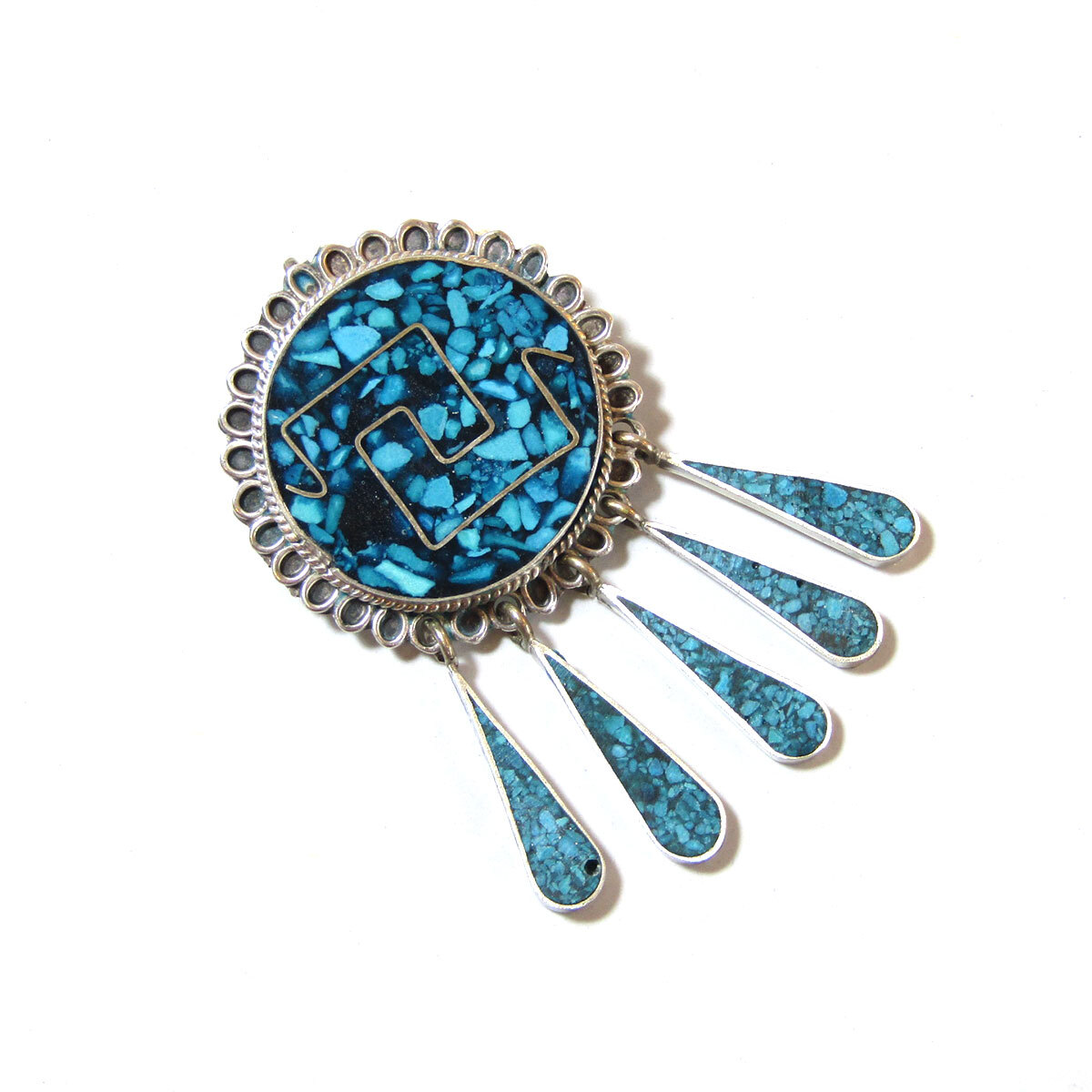 ★ヴィンテージ / メキシカンジュエリー / ブローチ / ペンダントトップ / ターコイズ / モザイク / シルバー / 925 / silver / MEXICO