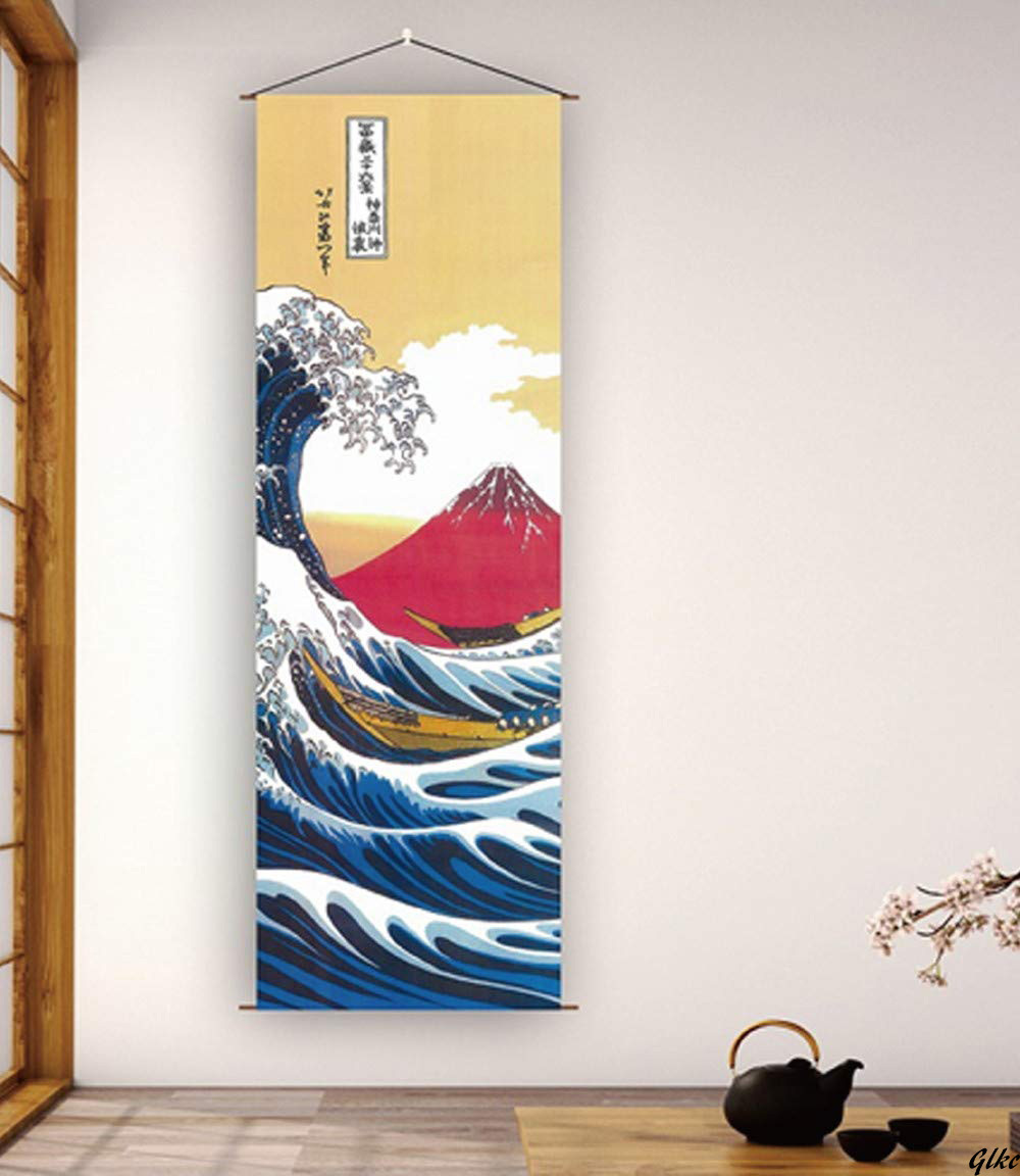 和風の「冨嶽三十六景」デザインのブルーのタペストリーです。
