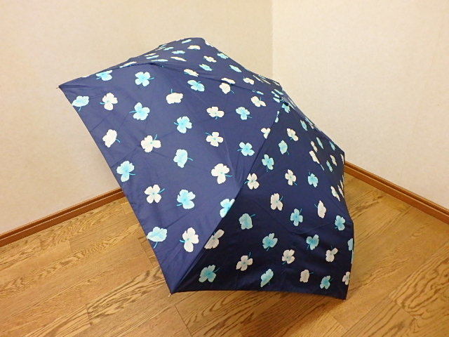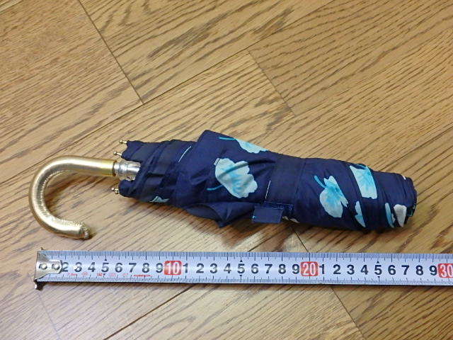 n204k 中古 レディース 折りたたみ傘 紺 花柄 女性用 (22-0418-1)