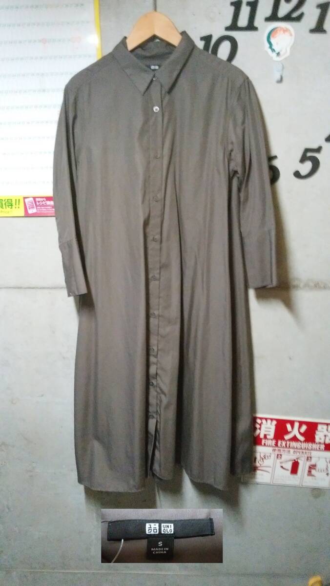 UNIQLO 7分袖シャツワンピース S チャコールグレー