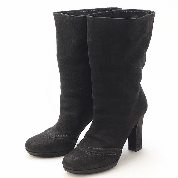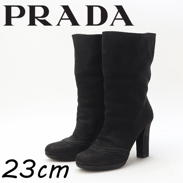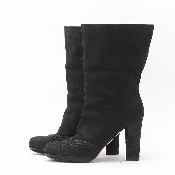 | ◆PRADA プラダ ヌバックレザー ヒール ブール 黒 ブラック 36 | |