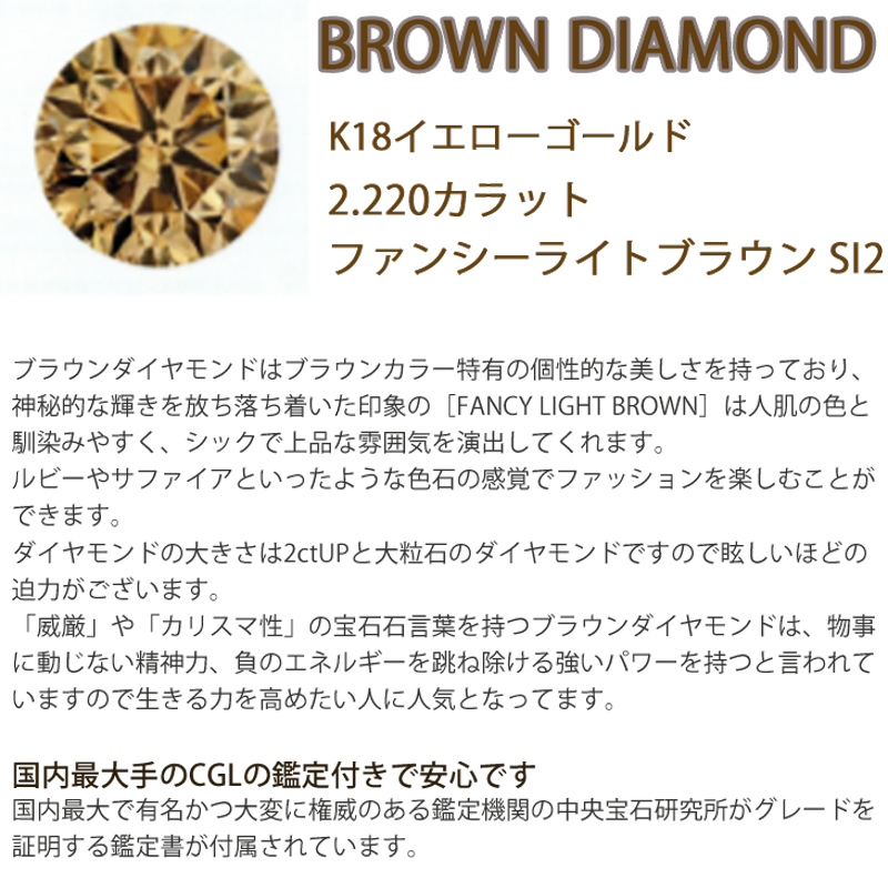 | 素材 | K18(刻印入り) イエローゴールド ブラウンダイヤモンド 2.220ct |