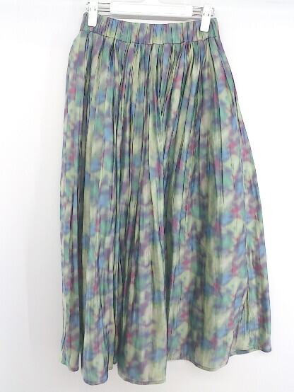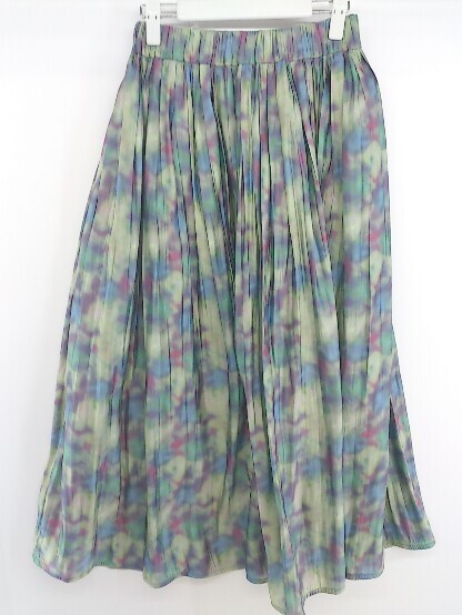 ◇ JEANASIS ジーナシス 総柄 ロング プリーツ スカート サイズF グリーン マルチ レディース P