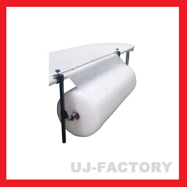 【 商品説明 】 ★緩衝材(プチプチ)を使用する梱包時にとても便利な作業台です。梱包作業の効率がアップします! ★今、梱包作業にご使用しているテーブルにセットして、使用できます。天板にコの字のクランプで挟むだけで簡単に取り付け・取り外しが可能です。支柱を上向きまたは、下向きにすることで緩衝材を上側、下側のどちらにも設置可能です。 ★取り付けが可能な作業台(テーブル)は、天板幅1450mm以上、天板厚み10mm~40mmまでの厚み。天板を挟むクランプ部分は幅:約80mm、奥行50mm以上。下向きに取り付けの場合は、床から天板下までの高さ670mm以上必要です。 ★使用可能な緩衝材(プチプチ)は、幅:約1200mm×直径:約500mm、重量7kgで紙管径50mm以上の製品になります。 ★緩衝材を押さえるシート押さえが付属で、緩衝材の余分な引き出しや、すべり落ちを押さえます。 ★梱包作業の多い物流センター様、ネットショップ様、お土産店様等色んな場所でお役にたちます。また、梱包商品にあわせてカットしやすいので無駄なゴミが出ずに省エネにもつながります。 ※配送の関係で、お客様での組み立てが必要になります。組み立てには「プラスドライバー」が必要です。