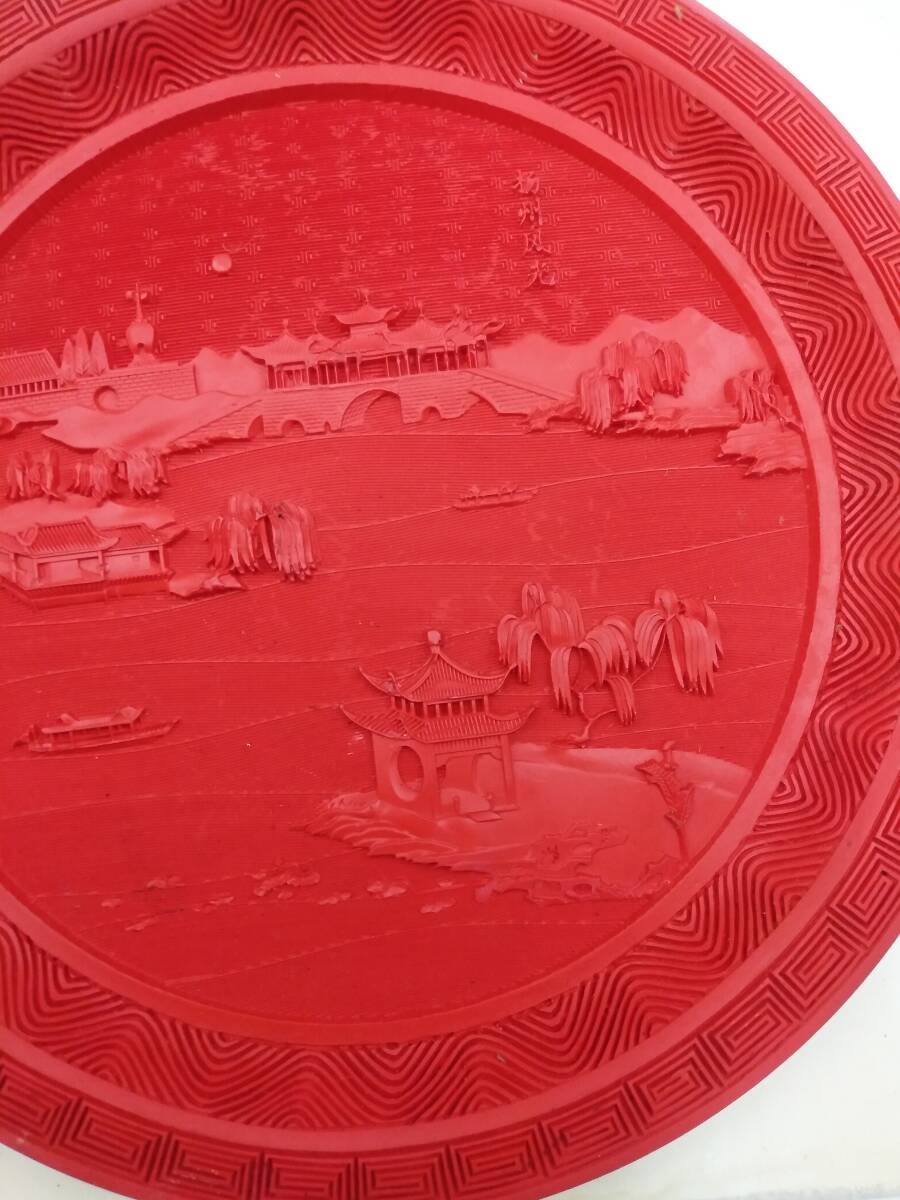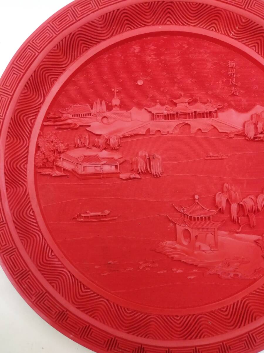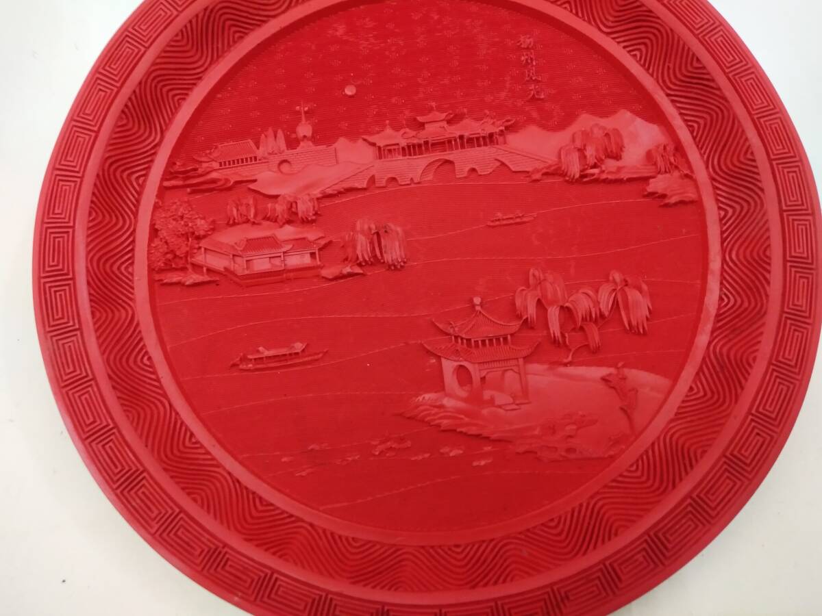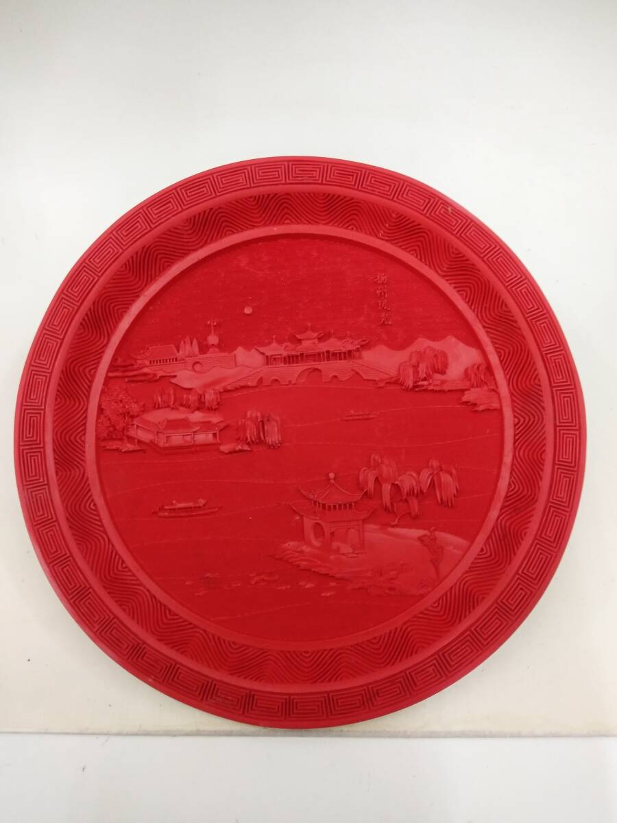 0918-0014  中古★樹脂製 風景図 額皿 飾皿 中国 菓子皿