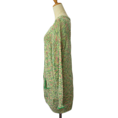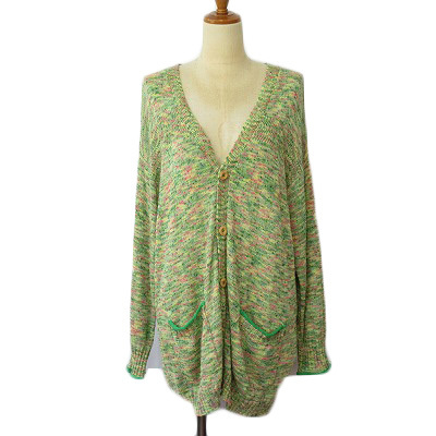 チチカカ titicaca カーディガン ミックスニット ネップ Vネック L 緑 グリーン レディース