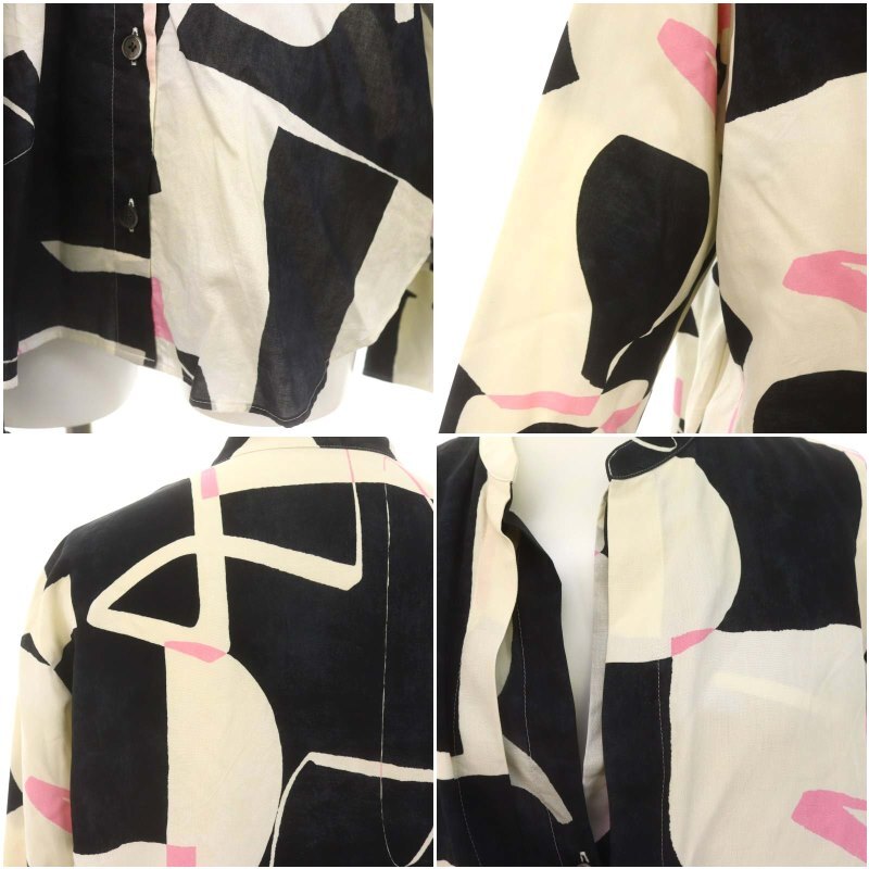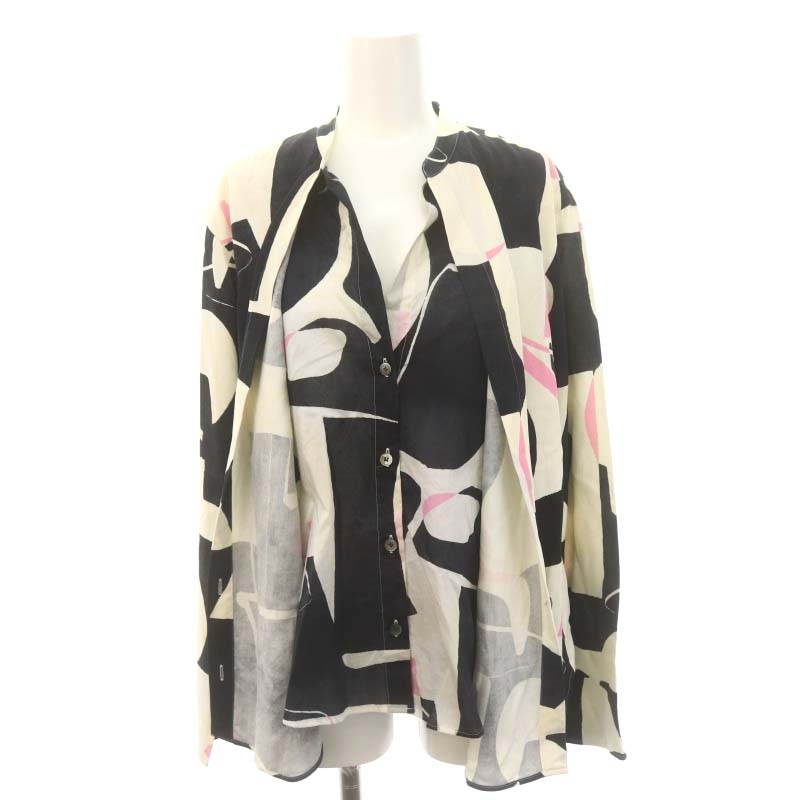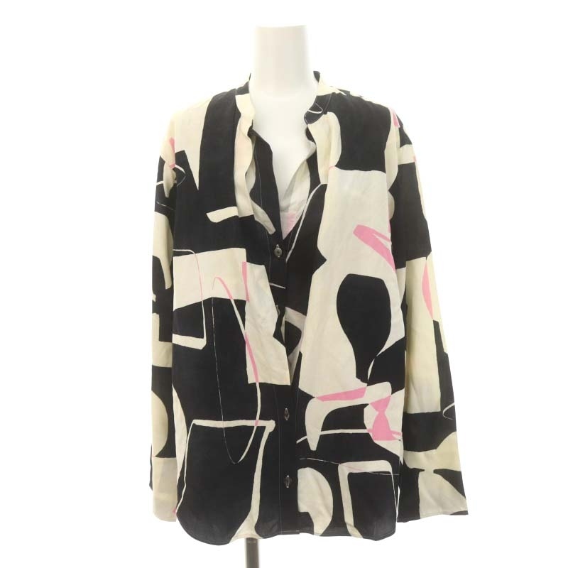 デプレ DES PRES トゥモローランド 23SS スパンシルクシャドウプリント バンドカラーシャツ 長袖 F シルク ベージュ