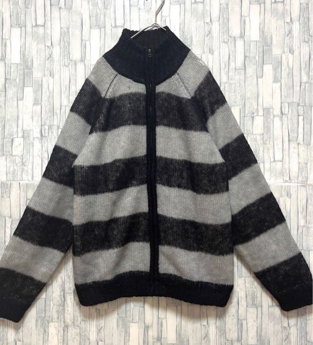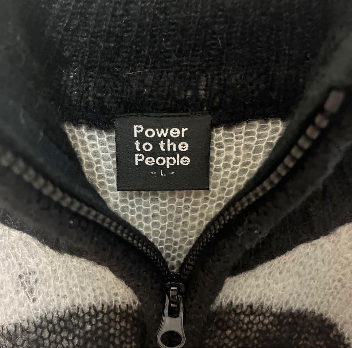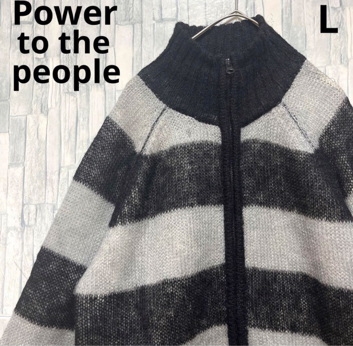 Power to the people パワートゥーザピープル 長袖 フルジップ mohair Knit モヘアニット ドライバーズニット セーター サイズL ブラック ボーダー 送料無料の出品です。