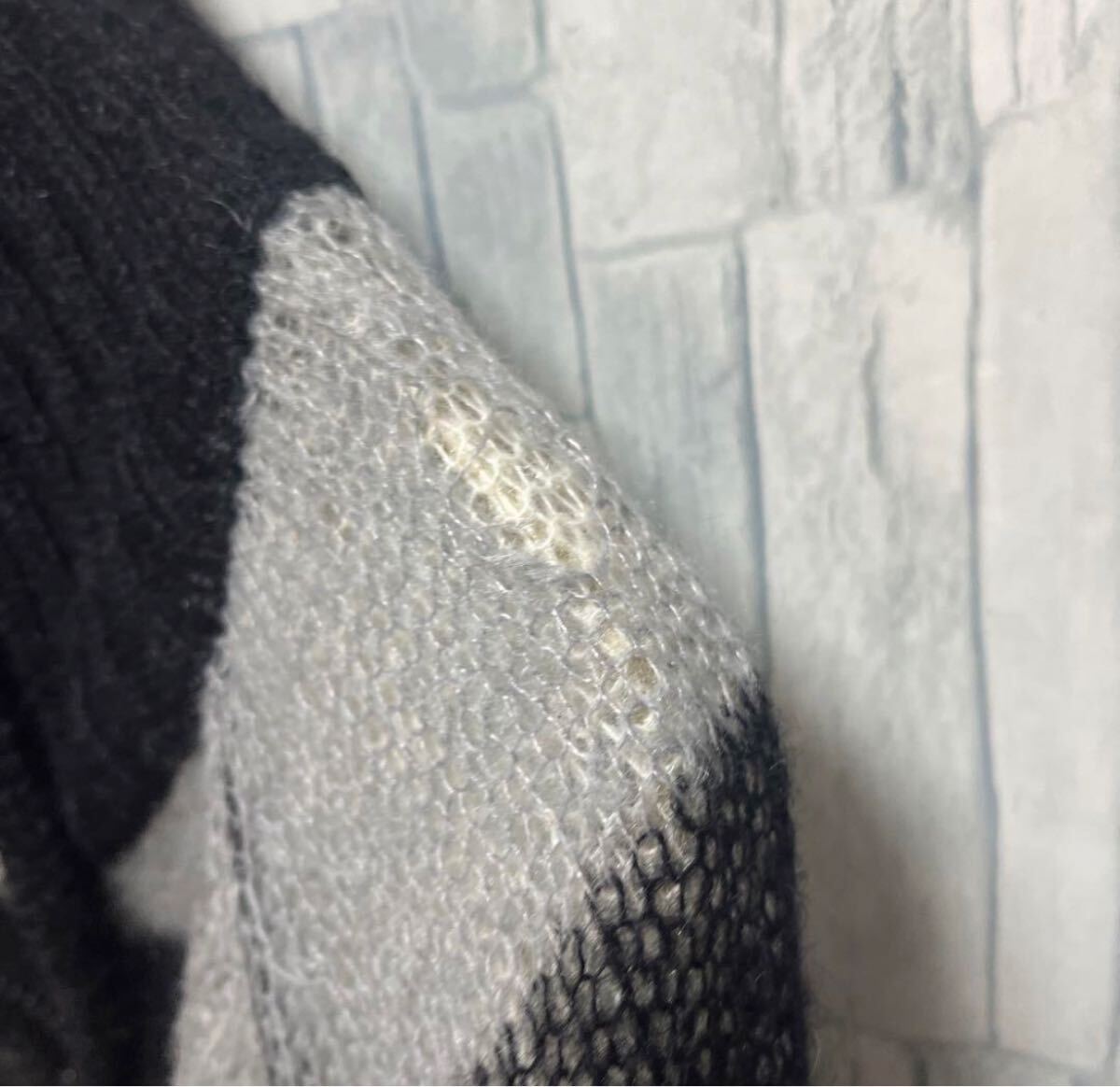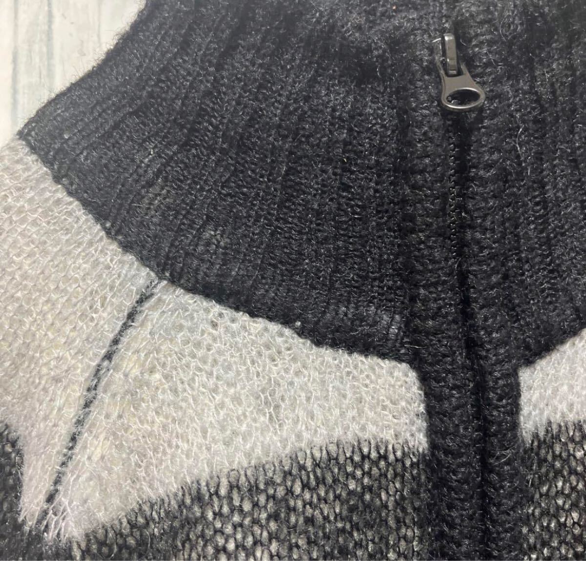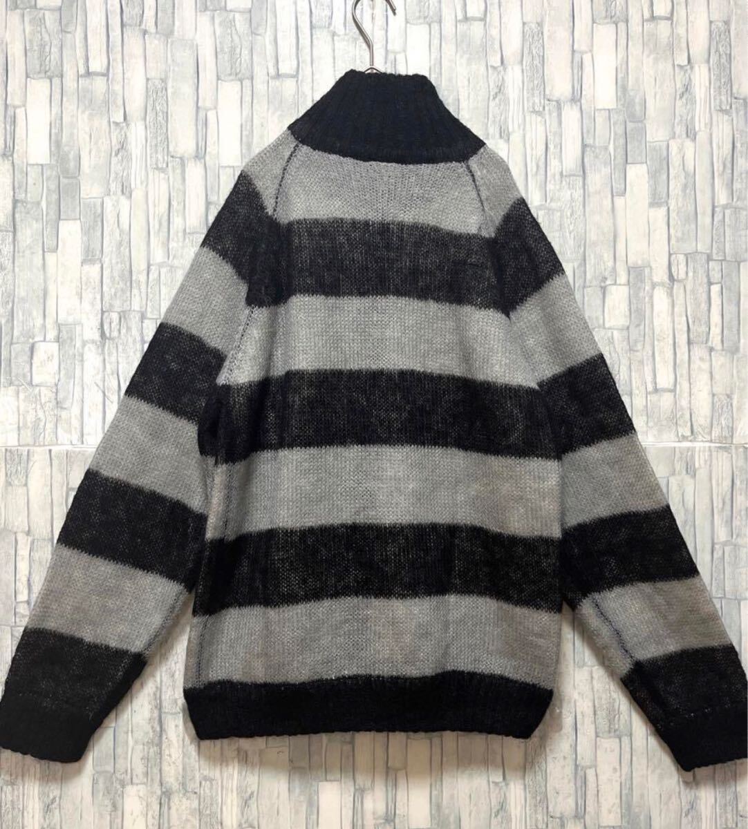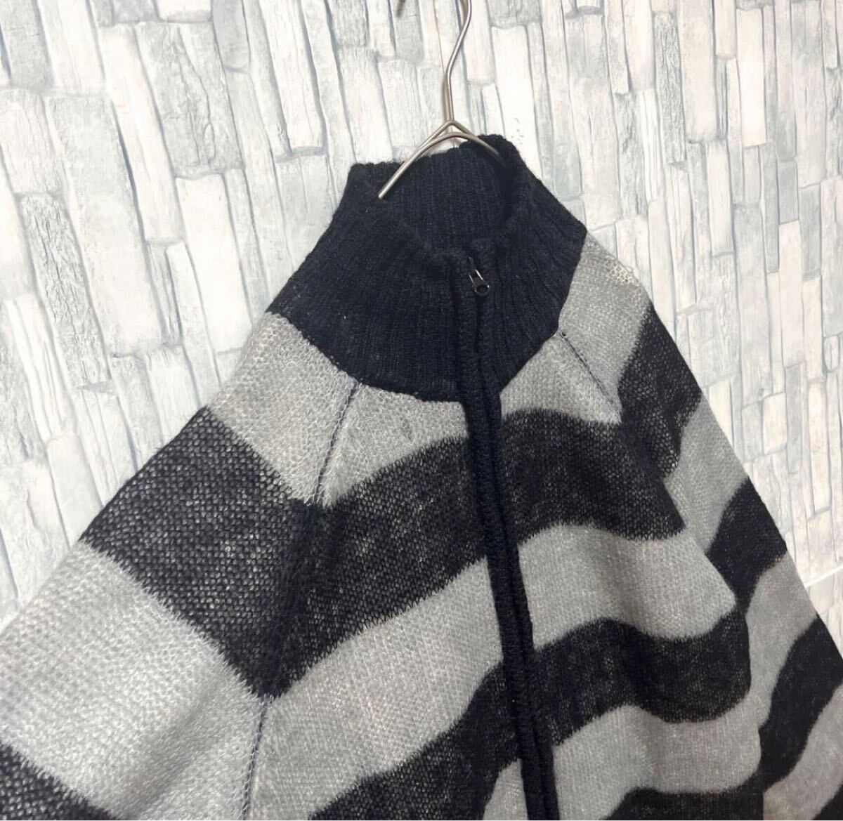 Power to the people パワートゥーザピープル 長袖 フルジップ mohair Knit モヘアニット ドライバーズニット セーター サイズL ブラック ボーダー 送料無料の出品です。