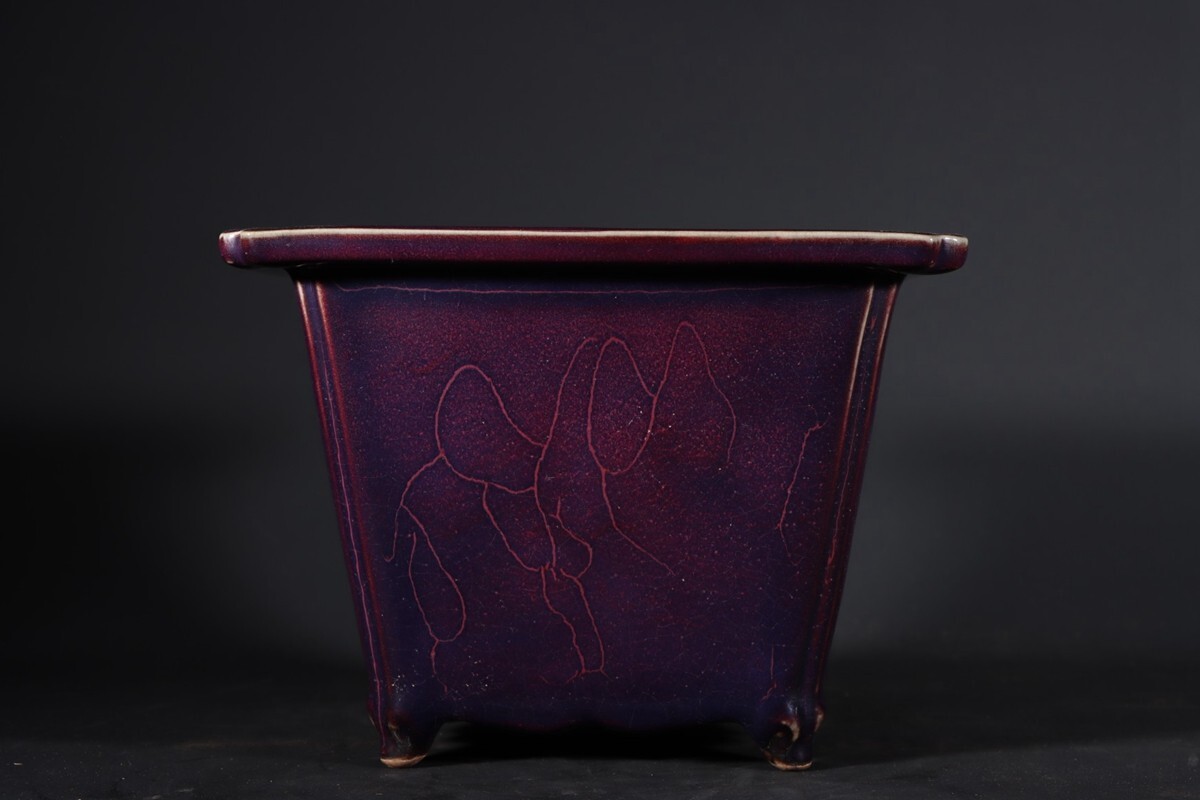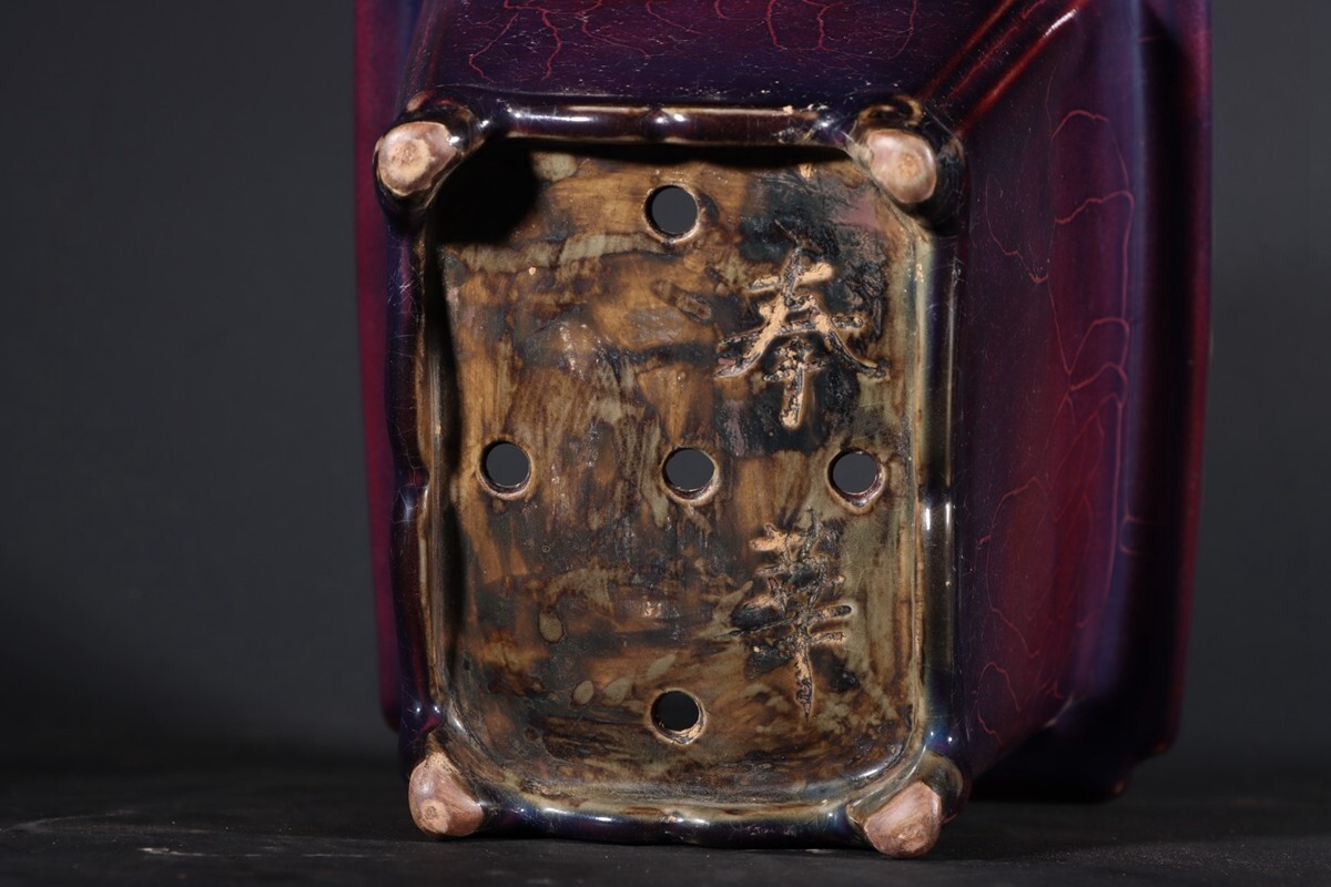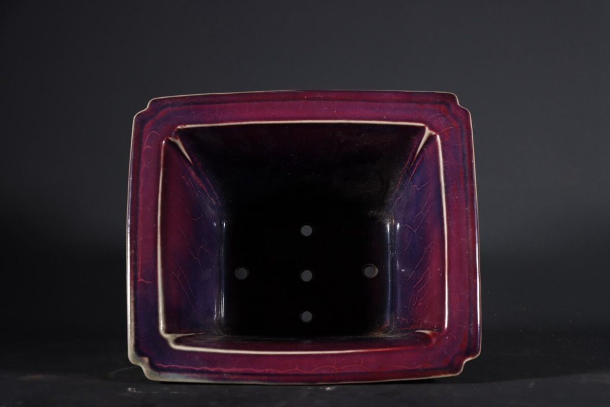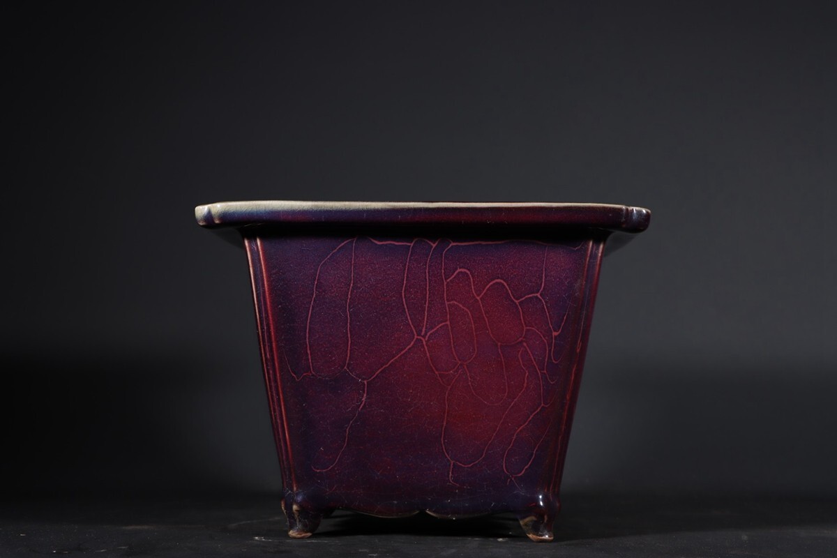 【瓏】陶磁器 鈞窯 窯変四方花盆 宋代 染付 置物擺件 賞物 古美術 陶芸 骨董品 蔵出