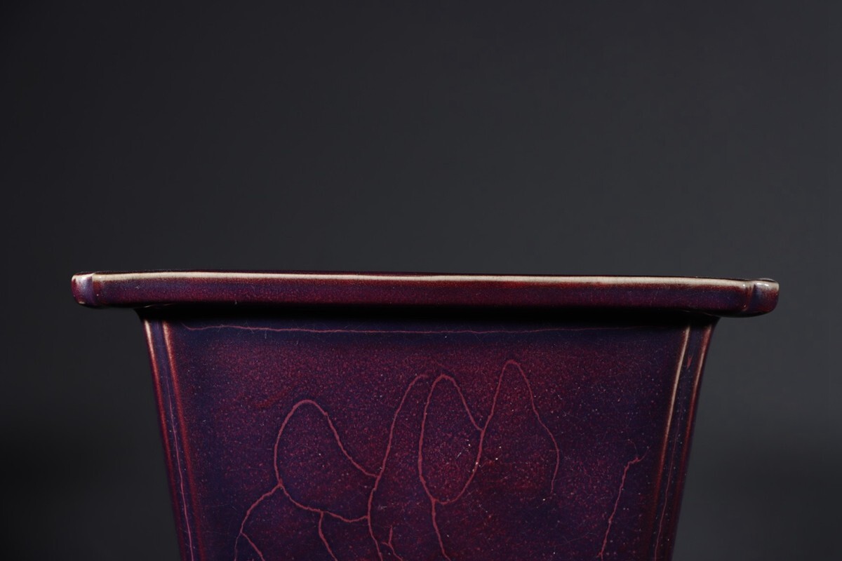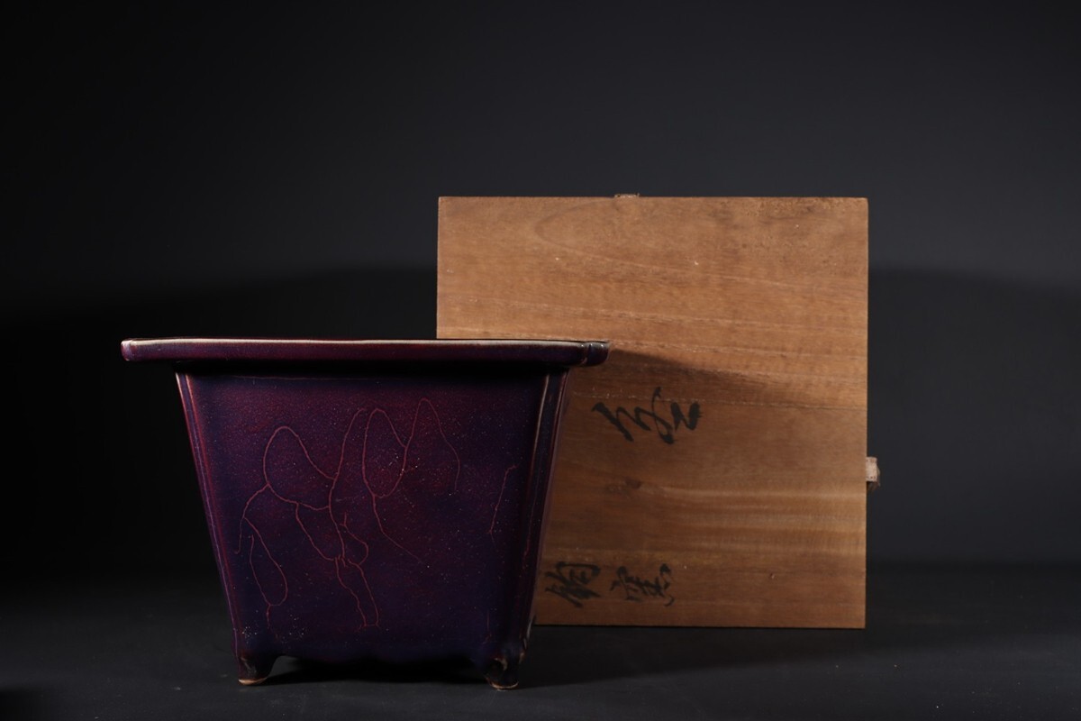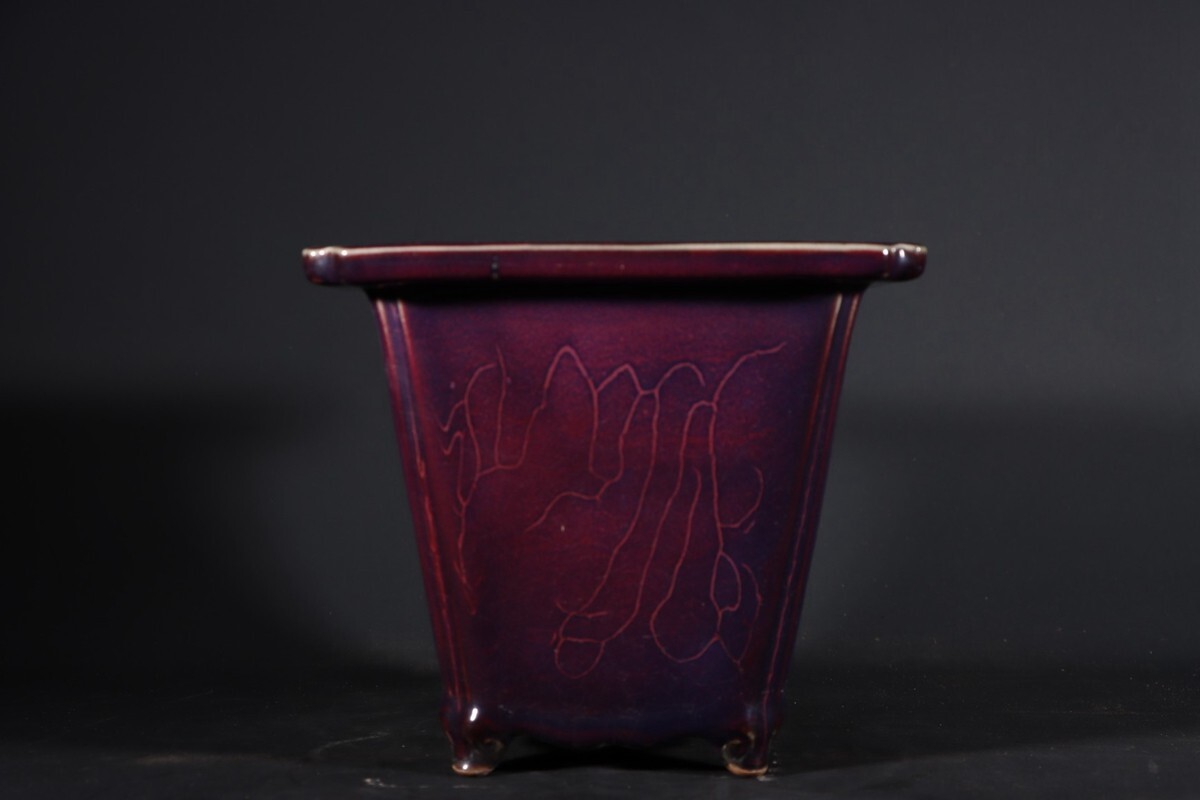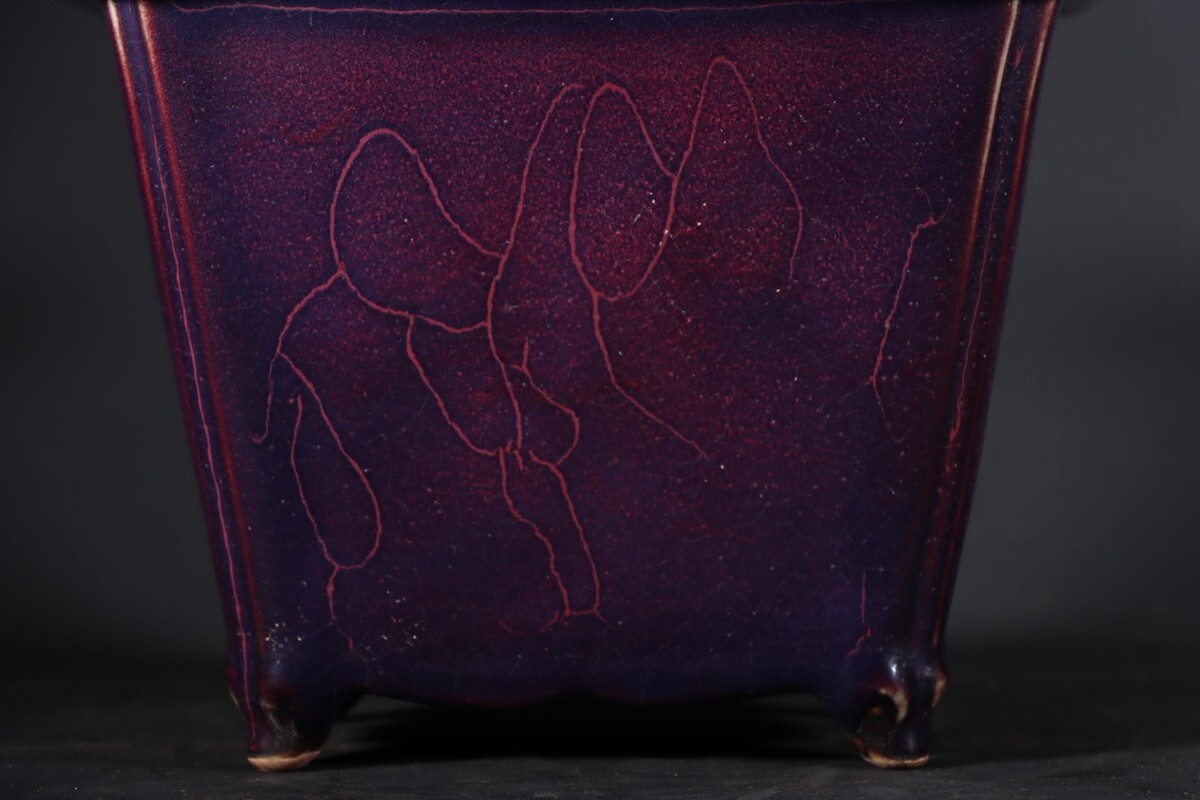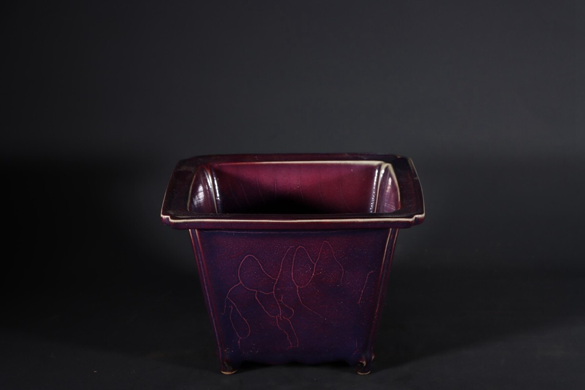 【瓏】陶磁器 鈞窯 窯変四方花盆 宋代 染付 置物擺件 賞物 古美術 陶芸 骨董品 蔵出